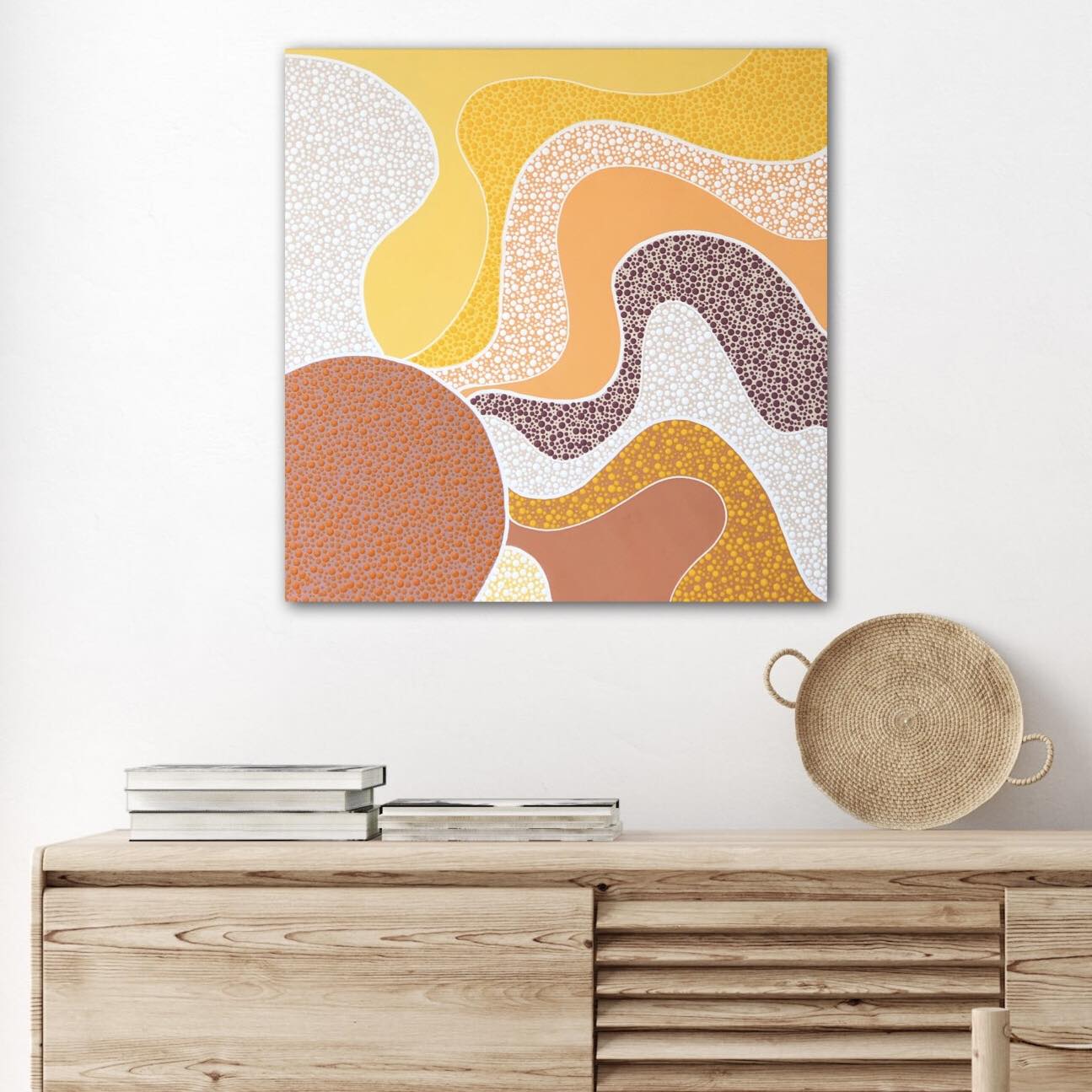 Nature, particularly the Australian landscapes she's explored remains a powerful muse. Her colour palettes echo the serenity of sunrises and sunsets—blending warm earthy tones with cool, introspective hues and vibrant splashes of joyful energy. For years, Nikki kept the spiritual side of her process private, fearing it might be misunderstood. But embracing her truth has allowed her to share the essence of what makes her art unique. Each of her creations is more than a painting—it’s a visual story infused with feeling, intention, and the quiet whispers of the universe, encouraging others to honour their own inner voice.