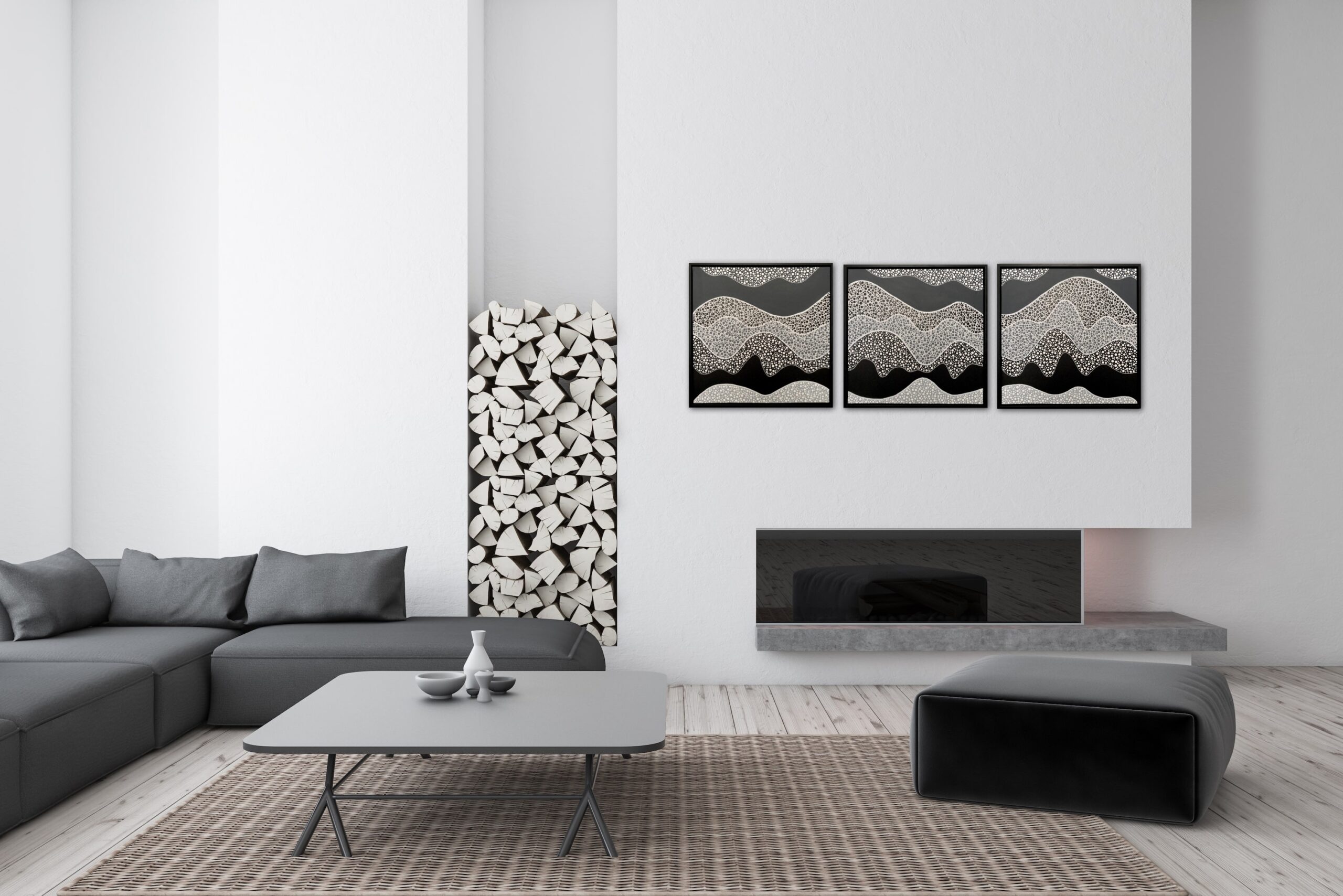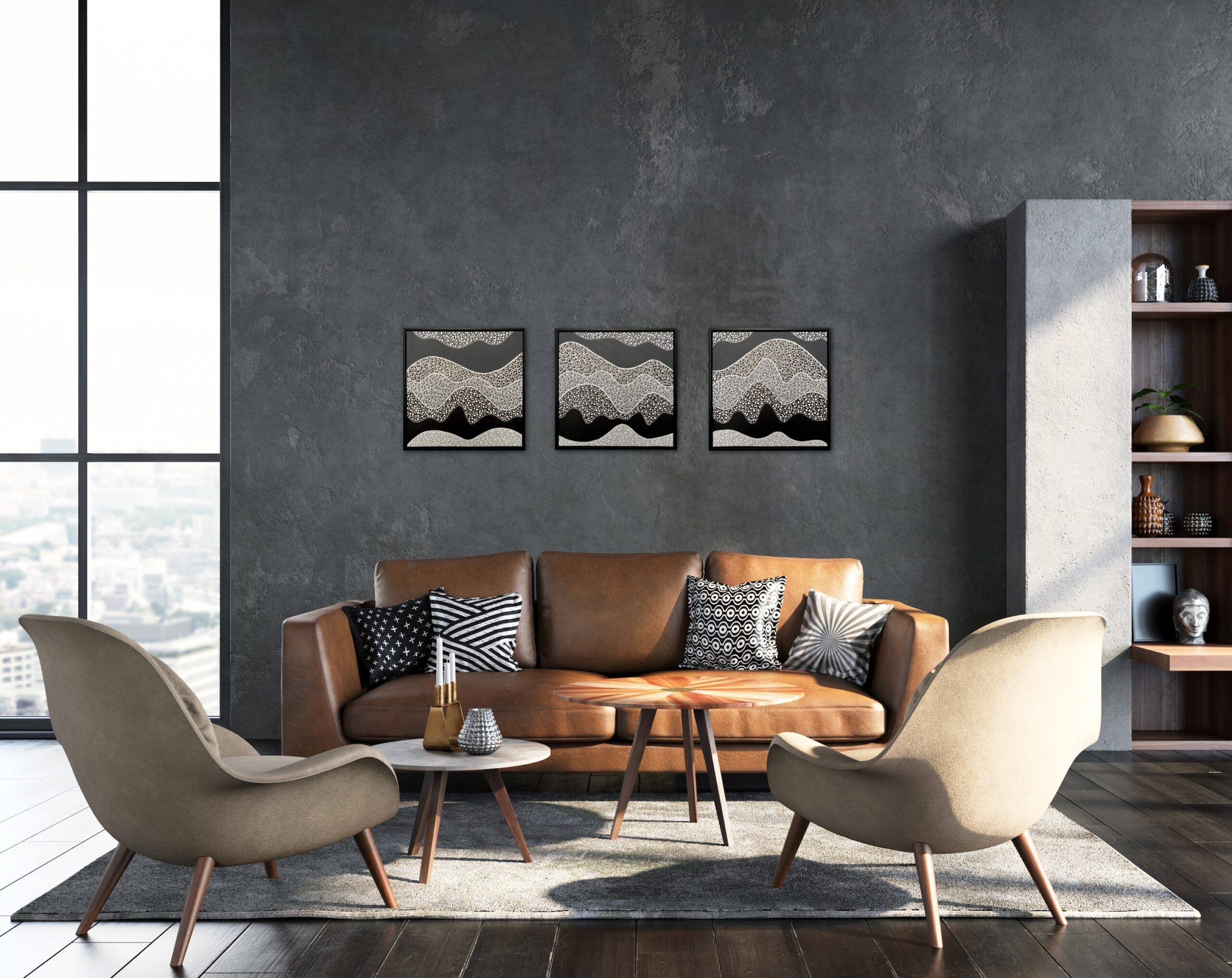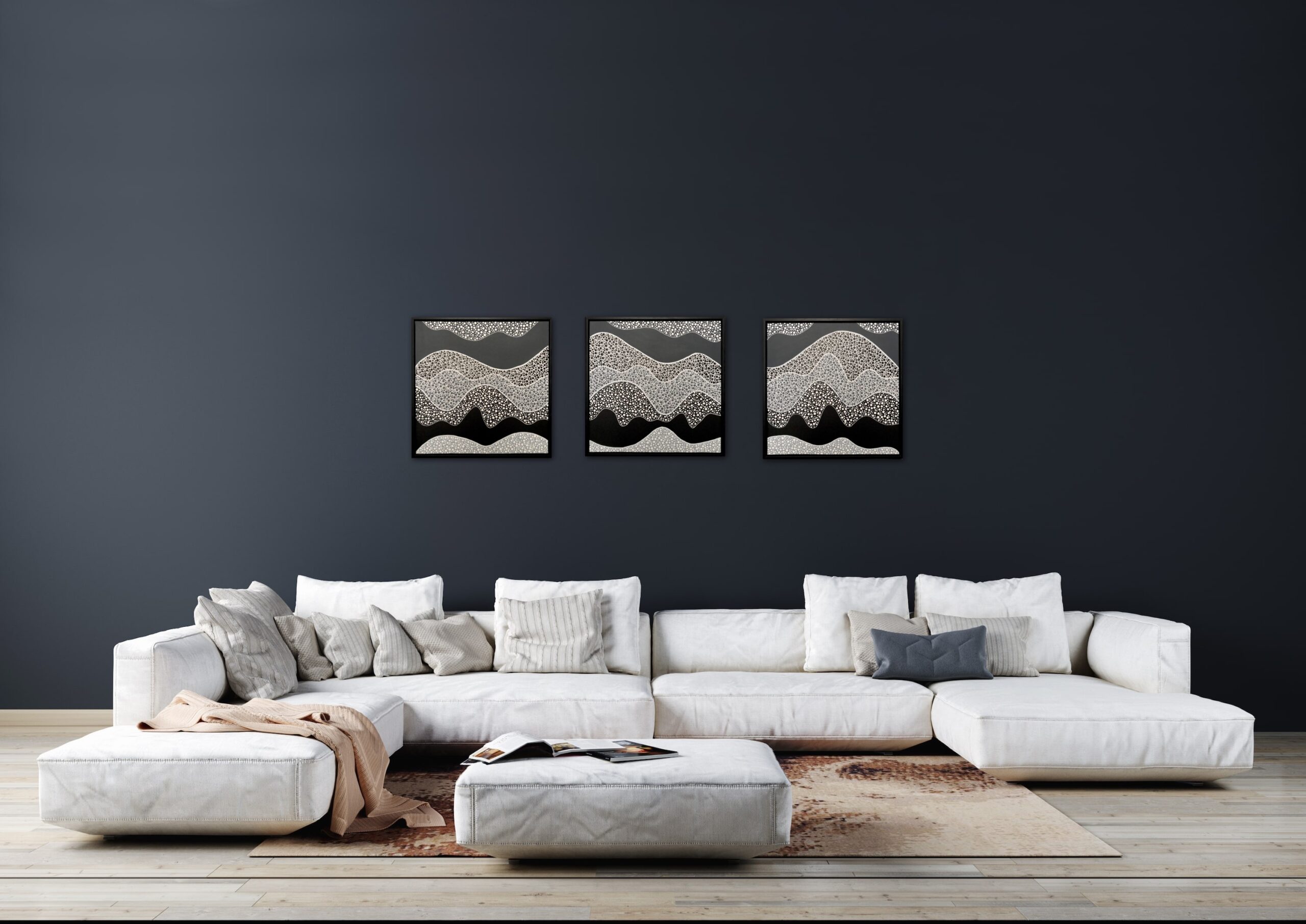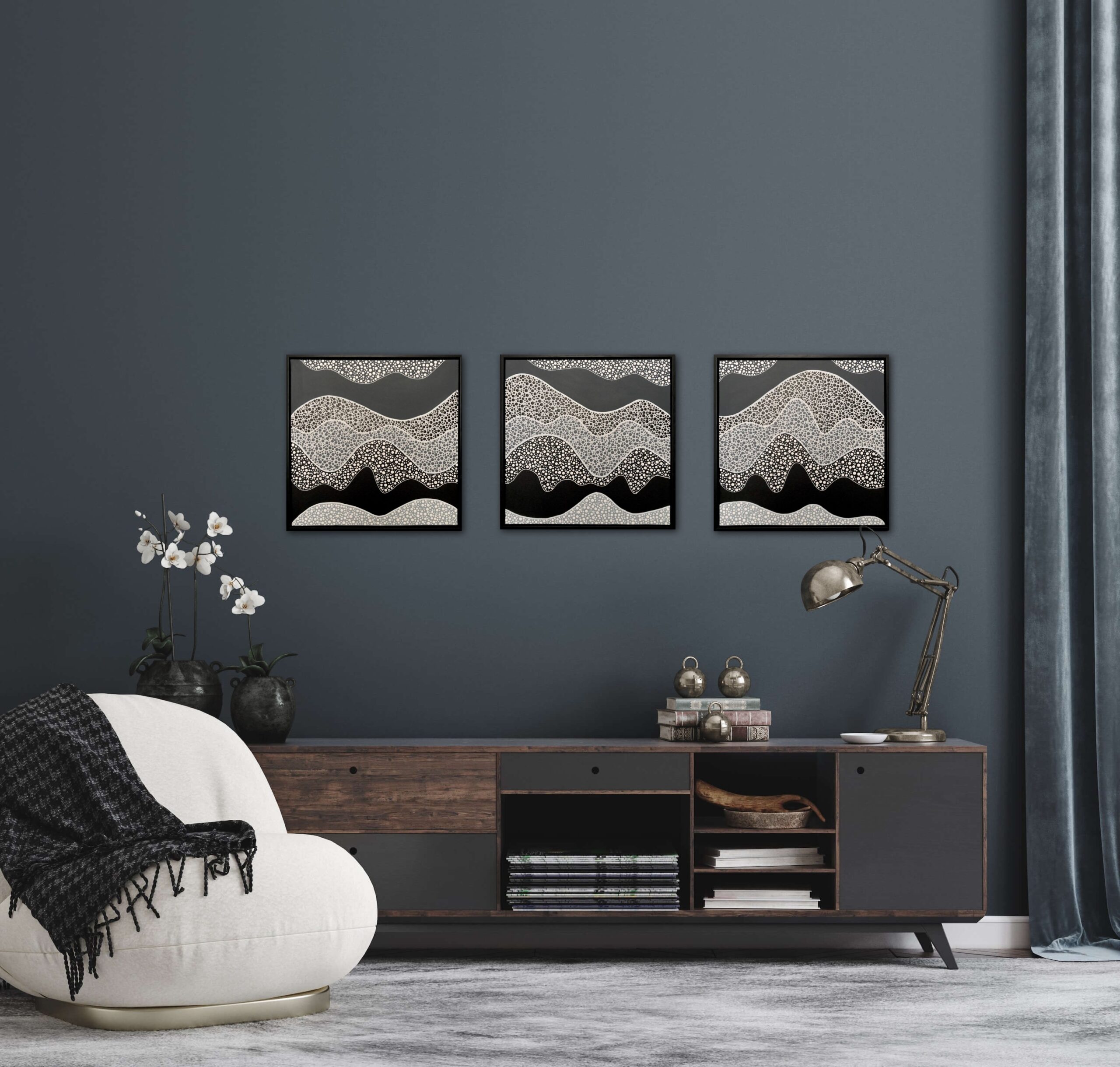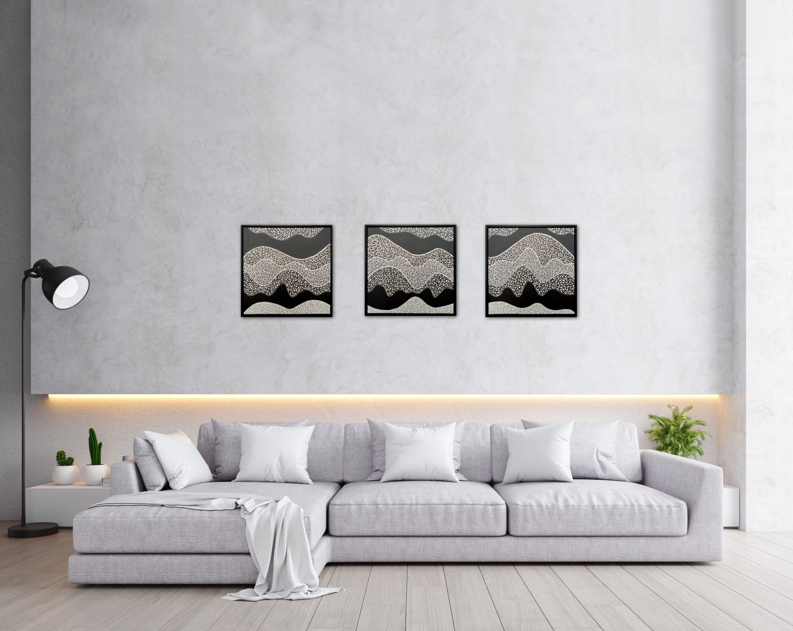 SET OF 3 X Acrylic Paint on Recycled/2nd Hand Gallery Float Frames Stretched Vinyl Canvases