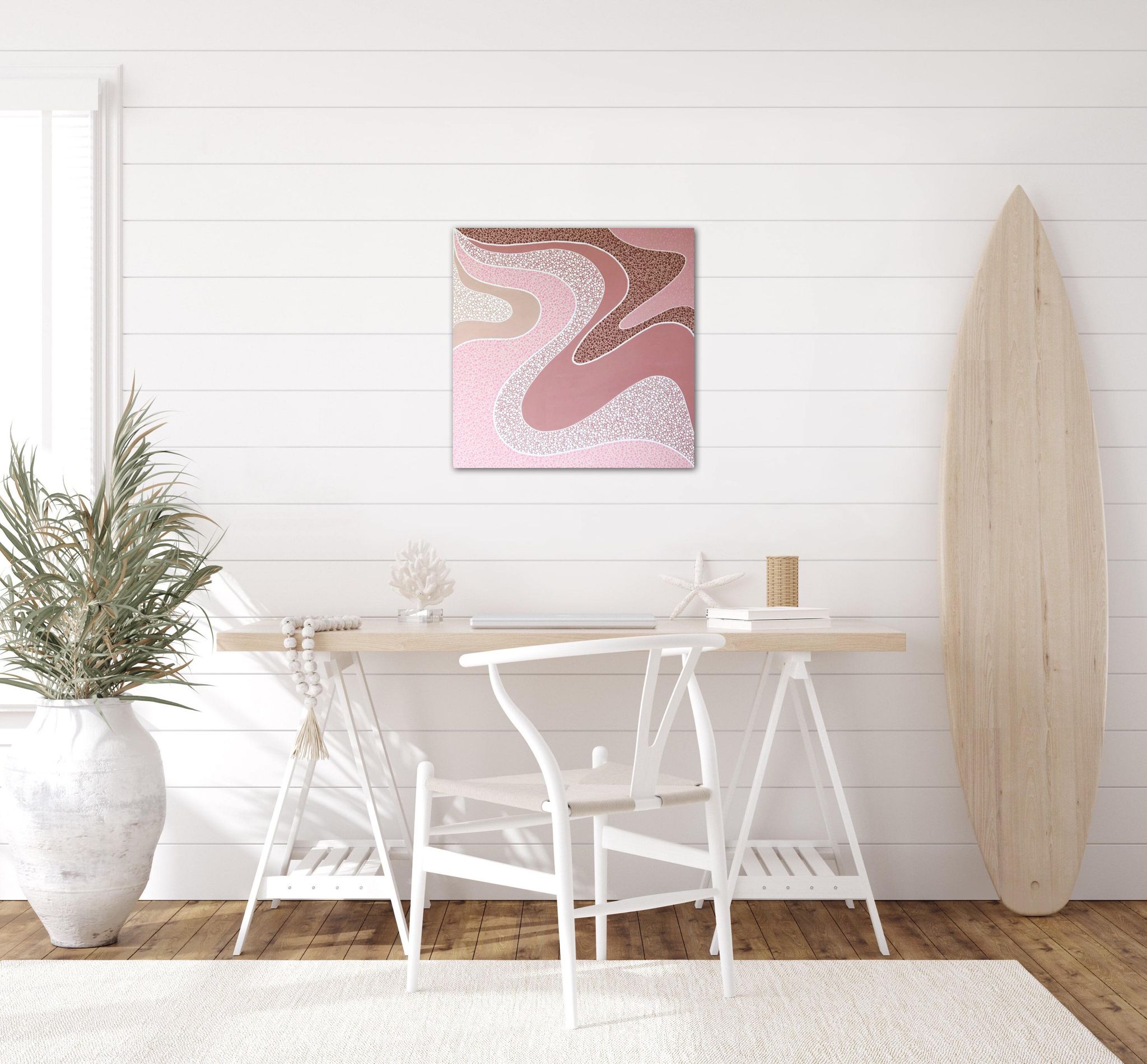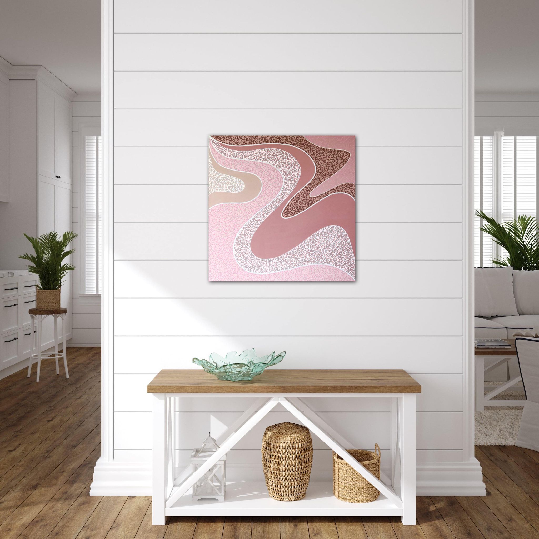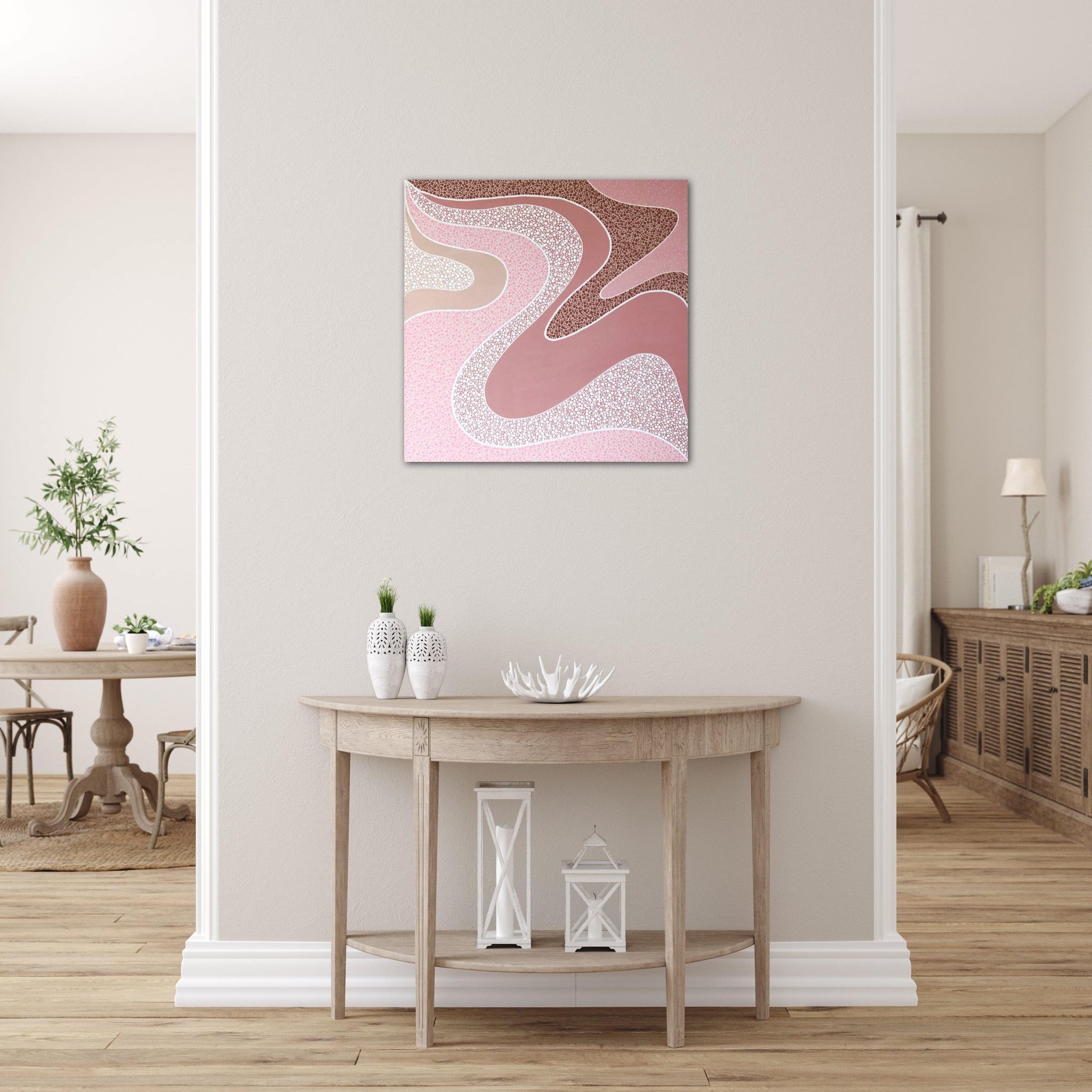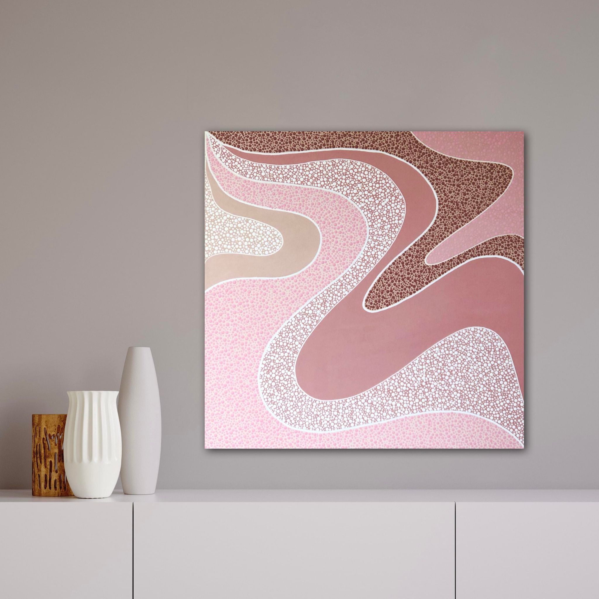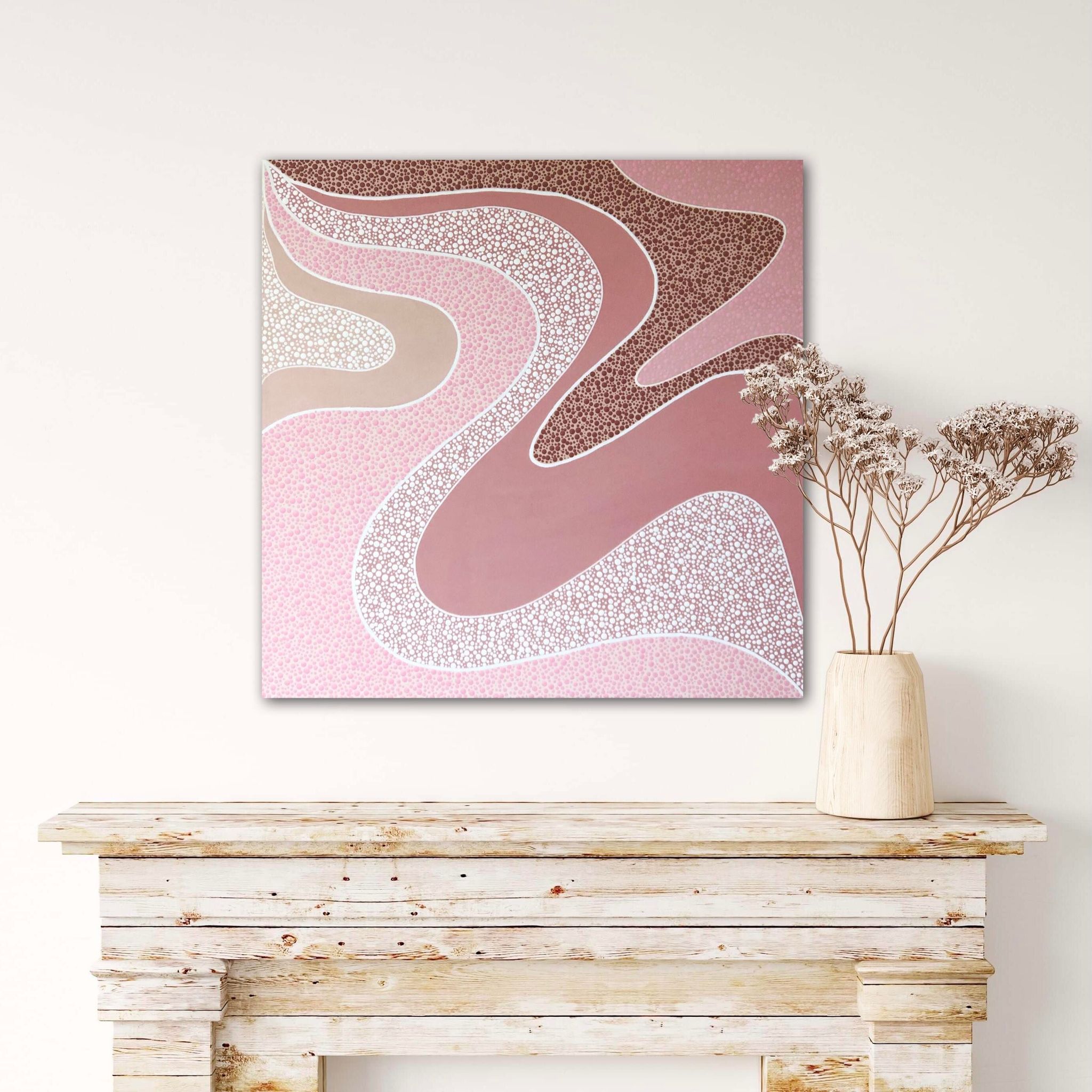 Nature, particularly the Australian landscapes she's explored remains a powerful muse. Her colour palettes echo the serenity of sunrises and sunsets—blending warm earthy tones with cool, introspective hues and vibrant splashes of joyful energy. For years, Nikki kept the spiritual side of her process private, fearing it might be misunderstood. But embracing her truth has allowed her to share the essence of what makes her art unique. Each of her creations is more than a painting—it’s a visual story infused with feeling, intention, and the quiet whispers of the universe, encouraging others to honour their own inner voice.