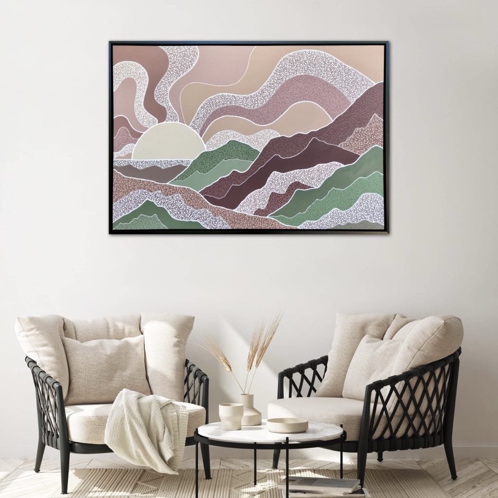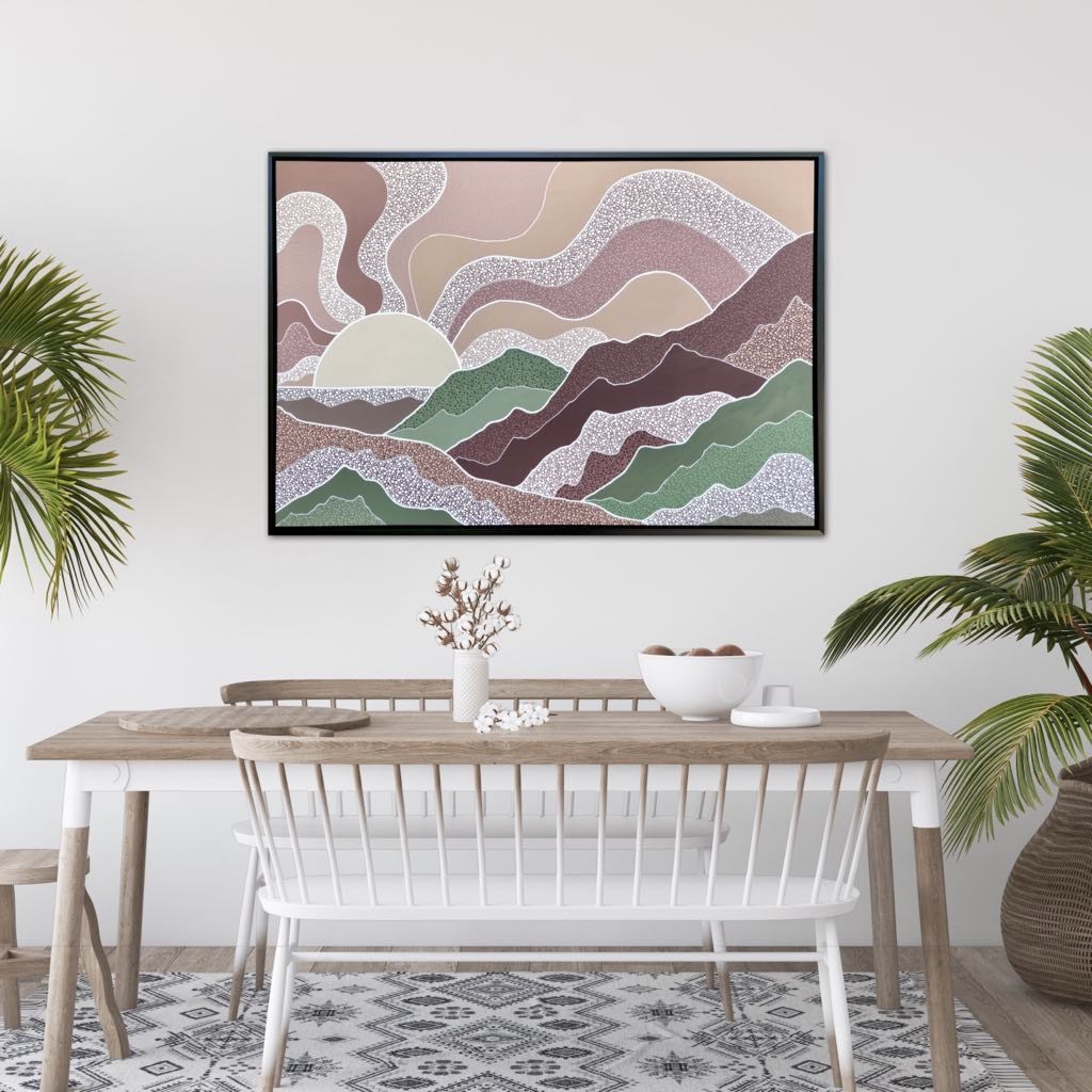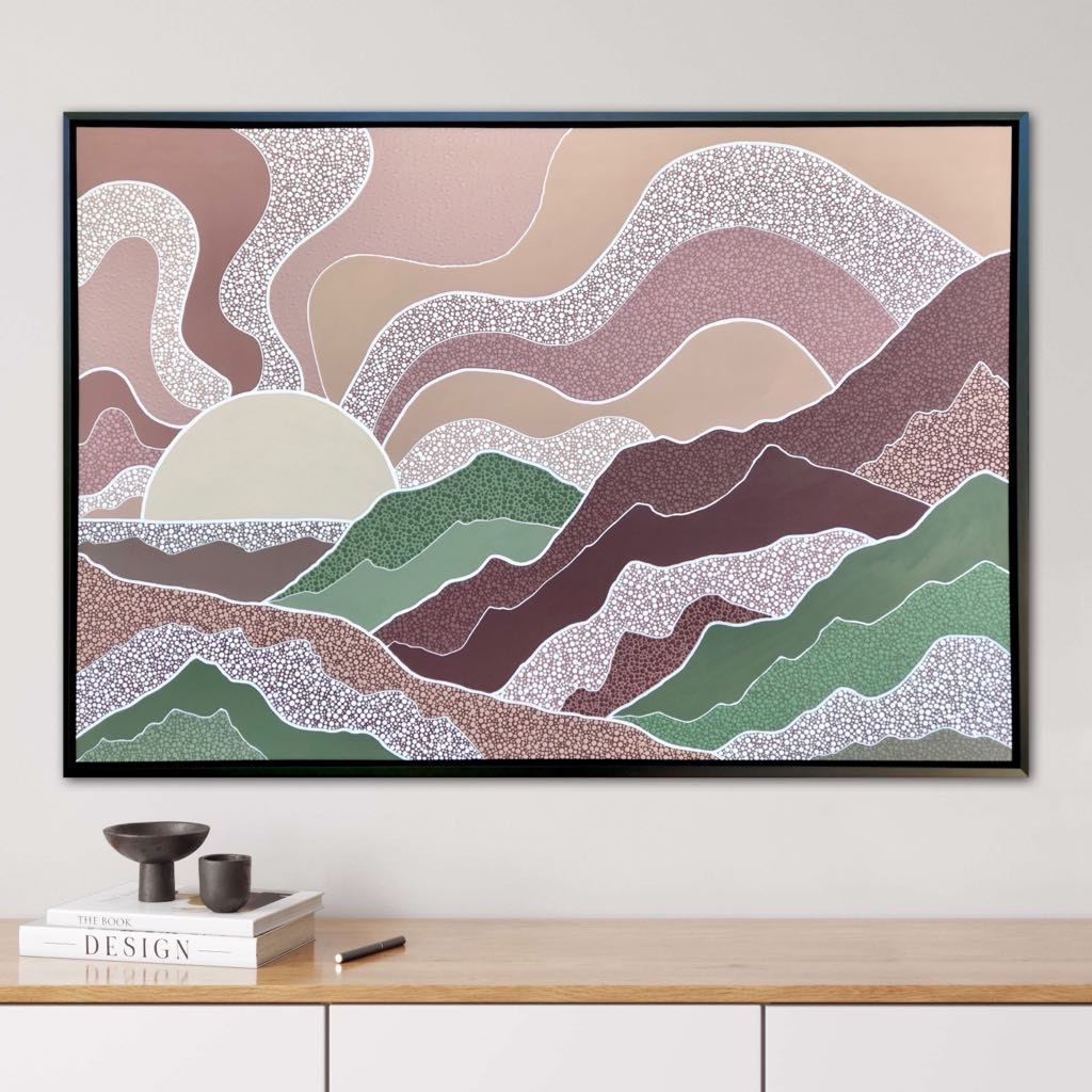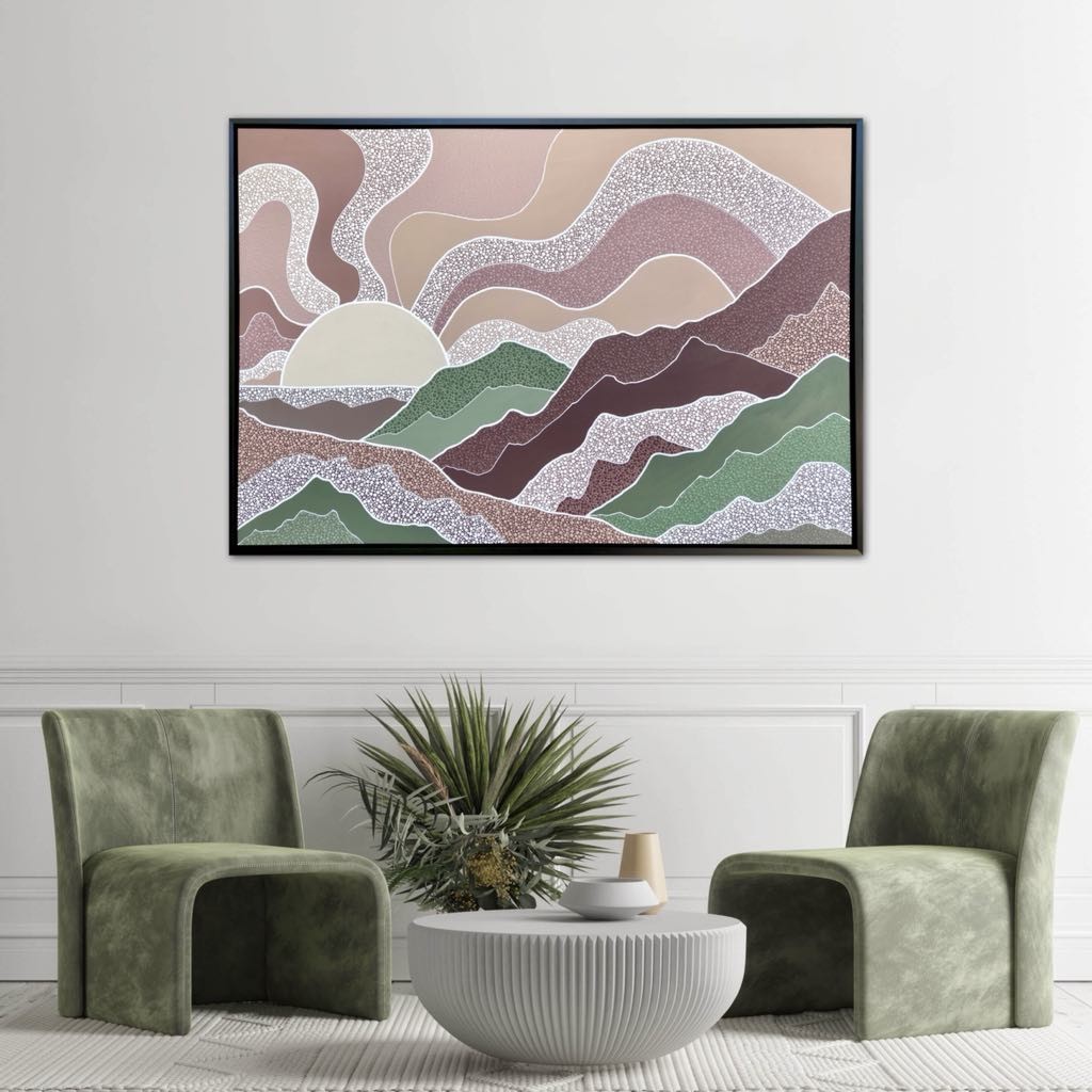 Desert Rose & Setting Sun with hues of Olive Green in the mountain ranges area