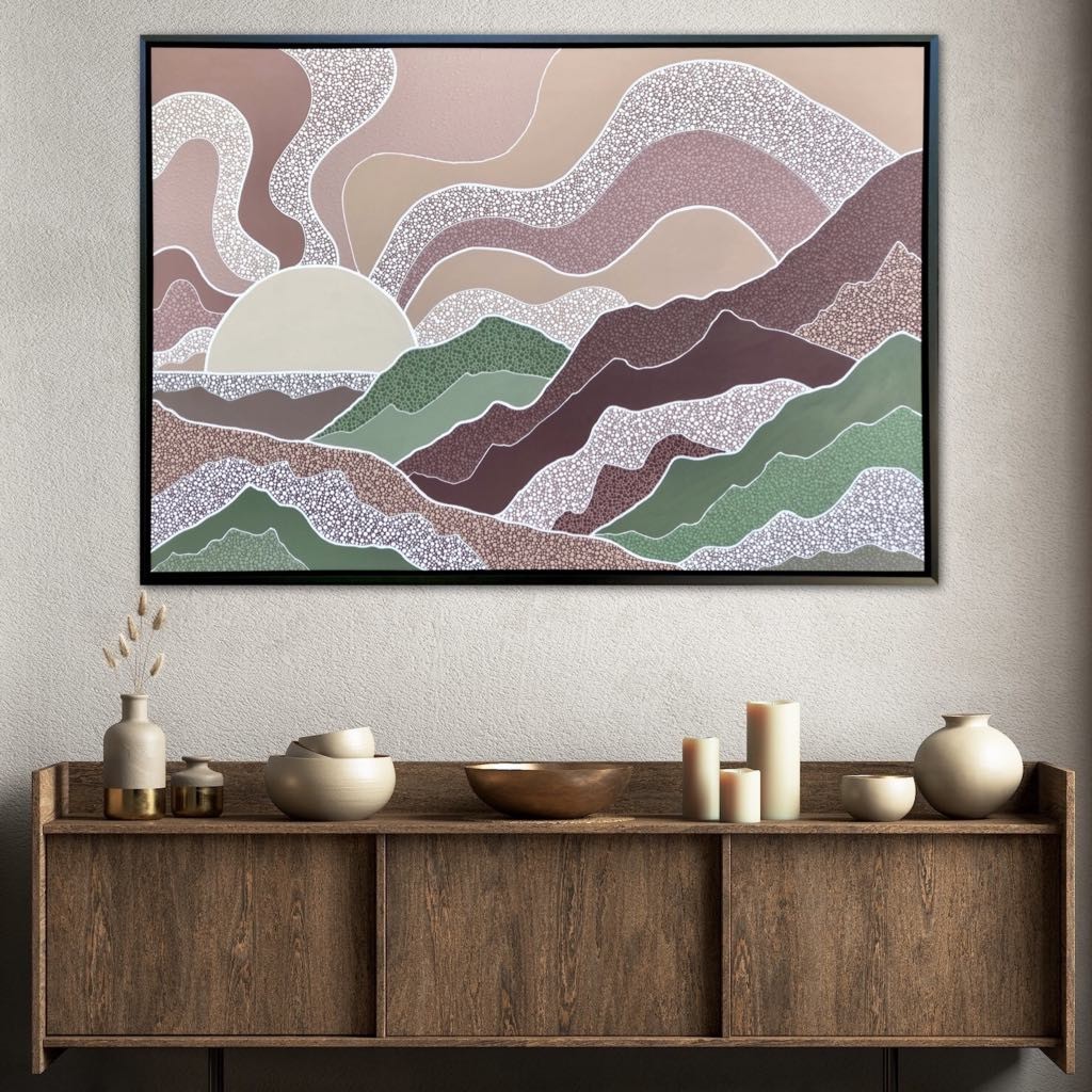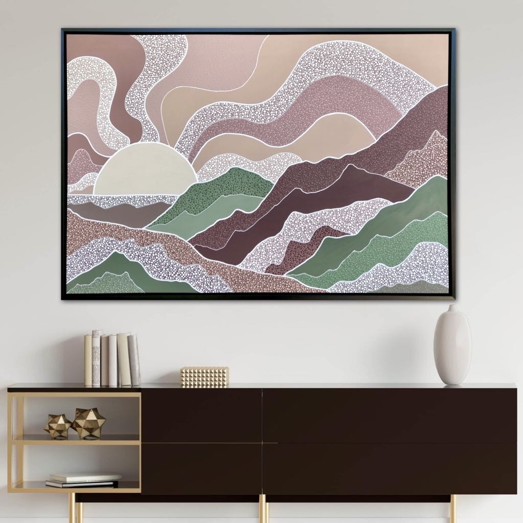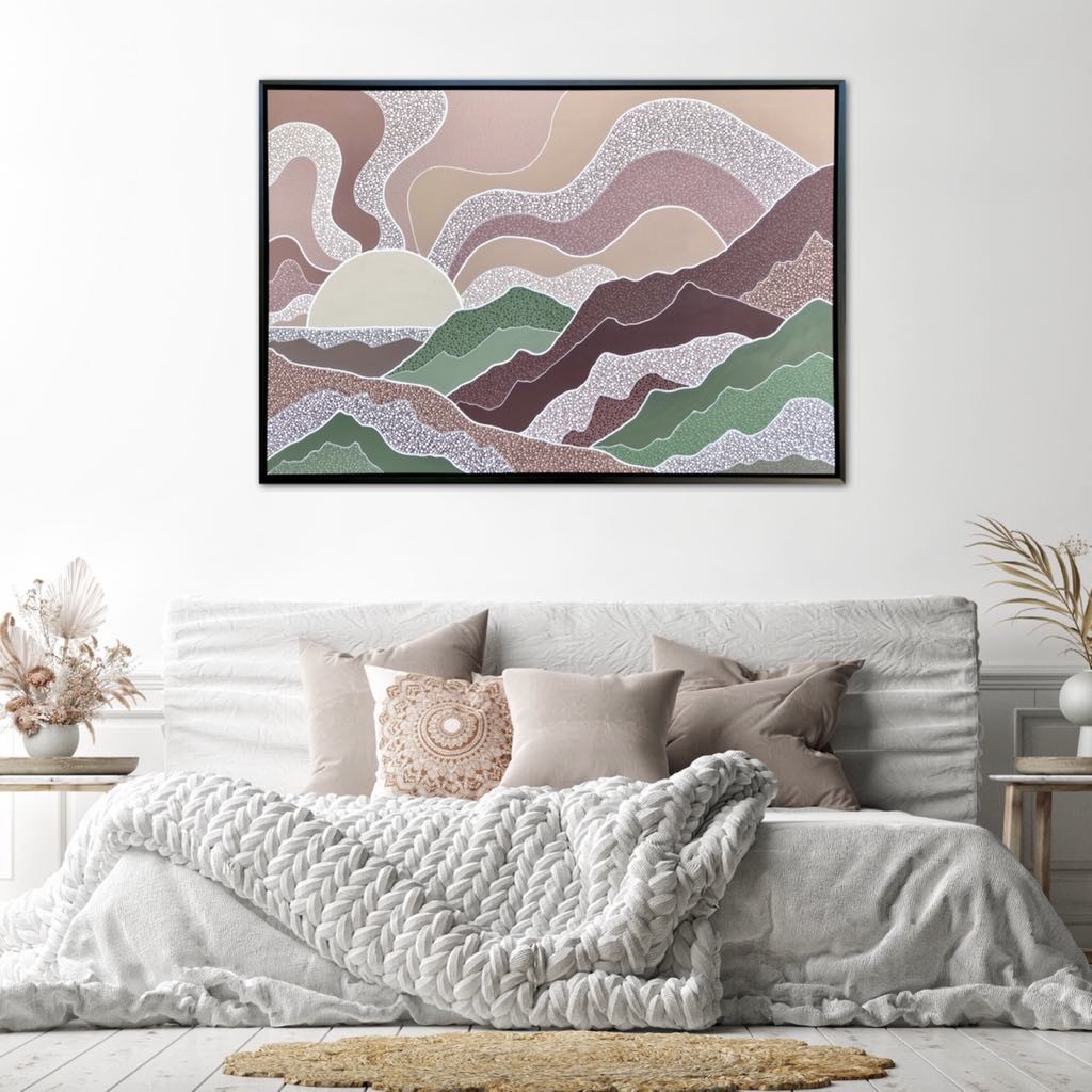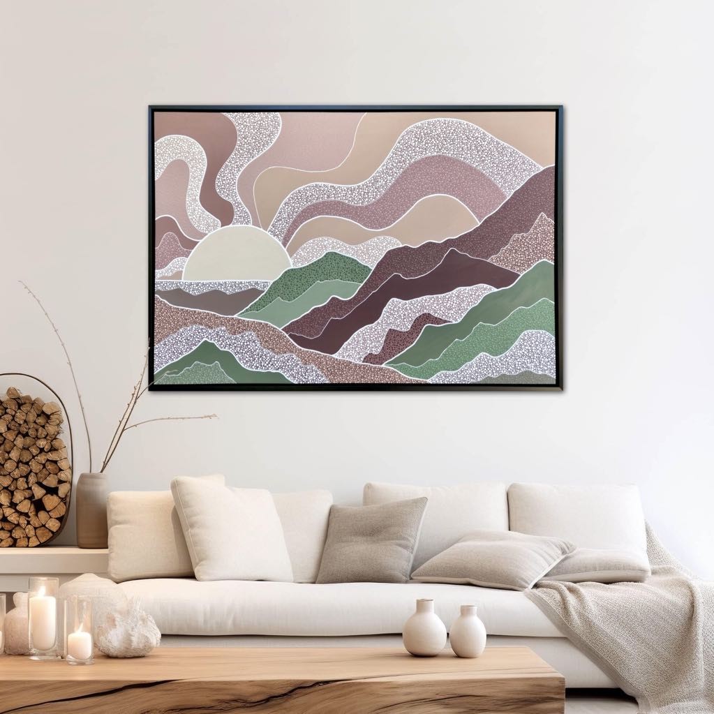 Desert Rose & Setting Sun with hues of Olive Green in the mountain ranges area