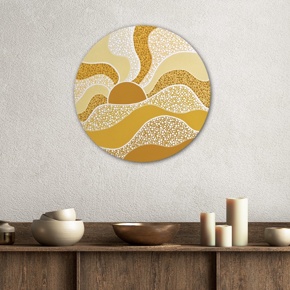 Nature, particularly the Australian landscapes she's explored remains a powerful muse. Her colour palettes echo the serenity of sunrises and sunsets—blending warm earthy tones with cool, introspective hues and vibrant splashes of joyful energy. For years, Nikki kept the spiritual side of her process private, fearing it might be misunderstood. But embracing her truth has allowed her to share the essence of what makes her art unique. Each of her creations is more than a painting—it’s a visual story infused with feeling, intention, and the quiet whispers of the universe, encouraging others to honour their own inner voice.