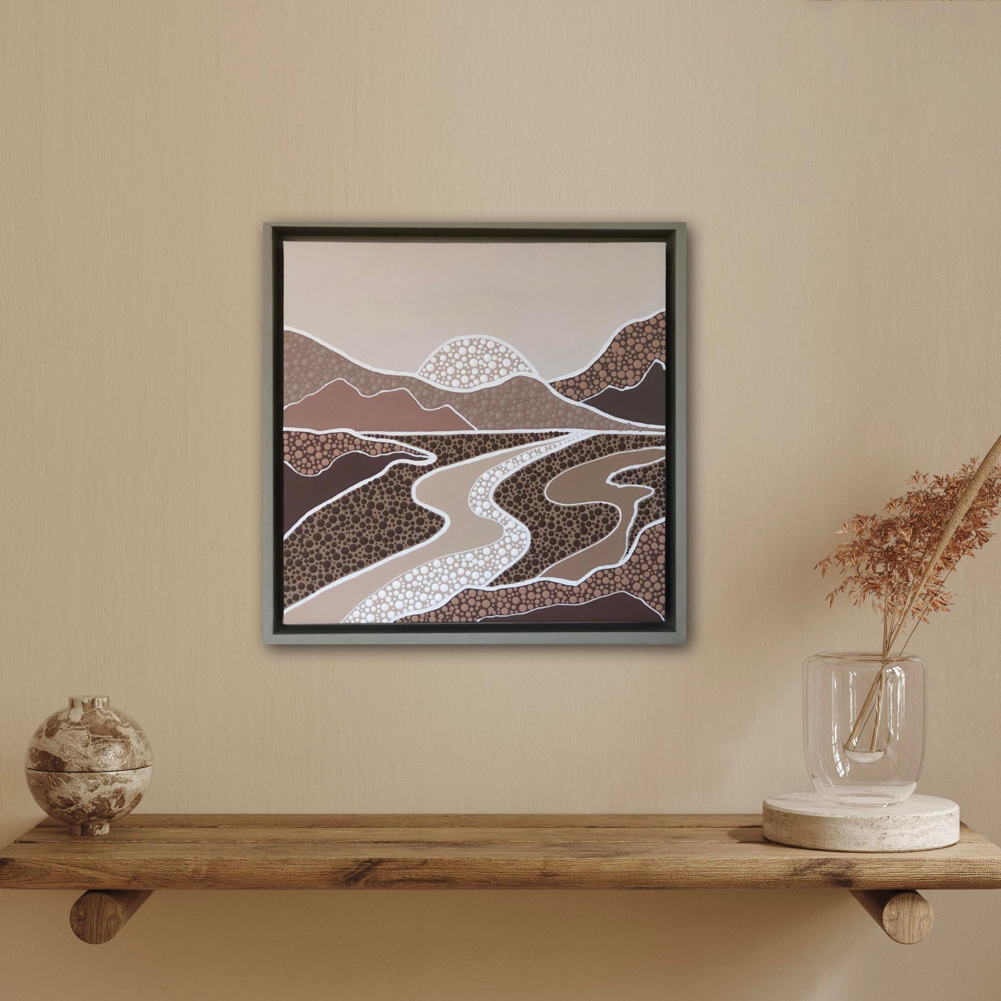 Nature, particularly the Australian landscapes she's explored remains a powerful muse. Her colour palettes echo the serenity of sunrises and sunsets—blending warm earthy tones with cool, introspective hues and vibrant splashes of joyful energy. For years, Nikki kept the spiritual side of her process private, fearing it might be misunderstood. But embracing her truth has allowed her to share the essence of what makes her art unique. Each of her creations is more than a painting—it’s a visual story infused with feeling, intention, and the quiet whispers of the universe, encouraging others to honour their own inner voice.