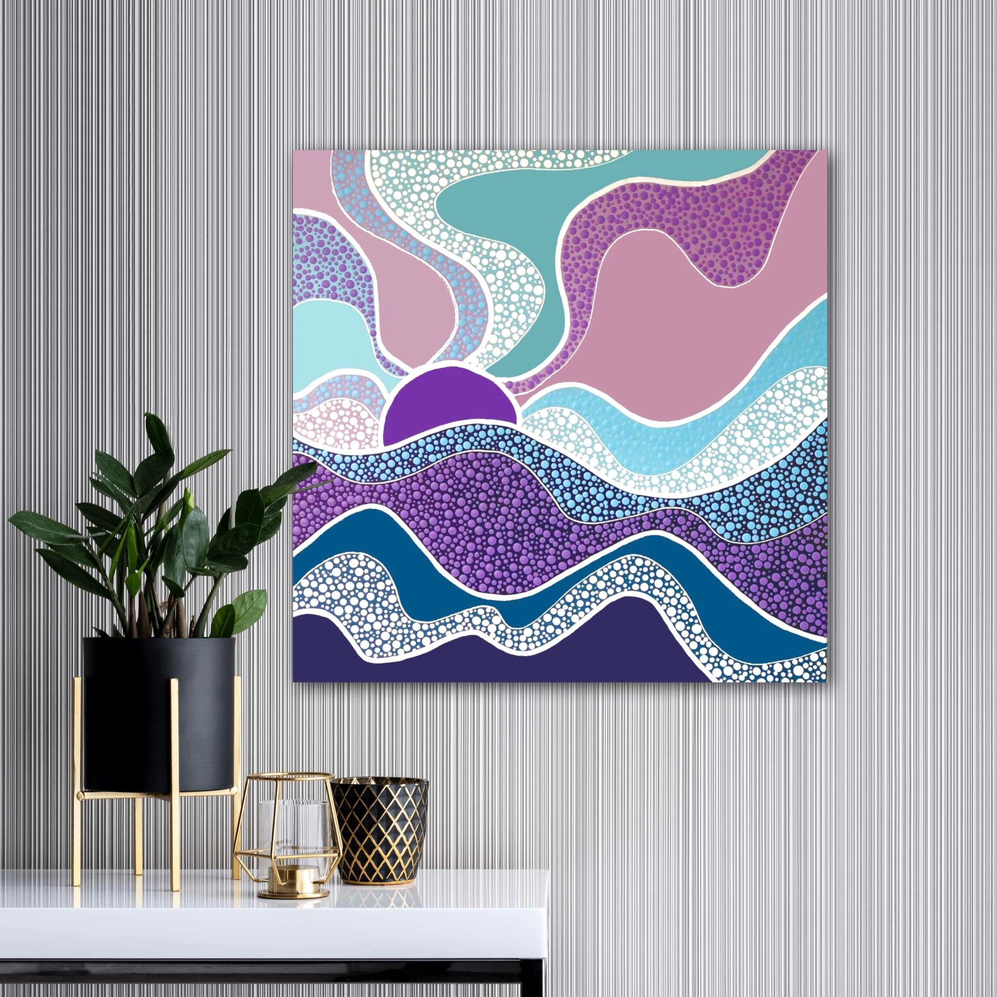 Nature, particularly the Australian landscapes she's explored remains a powerful muse. Her colour palettes echo the serenity of sunrises and sunsets—blending warm earthy tones with cool, introspective hues and vibrant splashes of joyful energy. For years, Nikki kept the spiritual side of her process private, fearing it might be misunderstood. But embracing her truth has allowed her to share the essence of what makes her art unique. Each of her creations is more than a painting—it’s a visual story infused with feeling, intention, and the quiet whispers of the universe, encouraging others to honour their own inner voice.