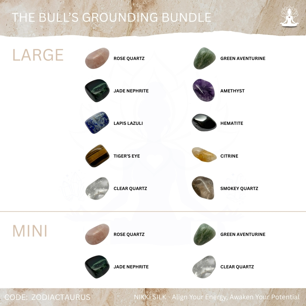 The Bull’s Grounding Bundle is designed for steady Taurus energy, helping you deepen calm, strengthen emotional balance and create secure foundations through soothing, stabilising earth-based support. These crystals ease stress, restore clarity, stabilise emotions and reconnect you to grounding energy during moments of overwhelm or change, while enhancing patience, perseverance, gentle growth and emotional harmony. Complete with guidance on each stone’s purpose and care, this bundle is ideal for both beginners and seasoned crystal lovers who want to feel centred, peaceful and aligned with their true nature.