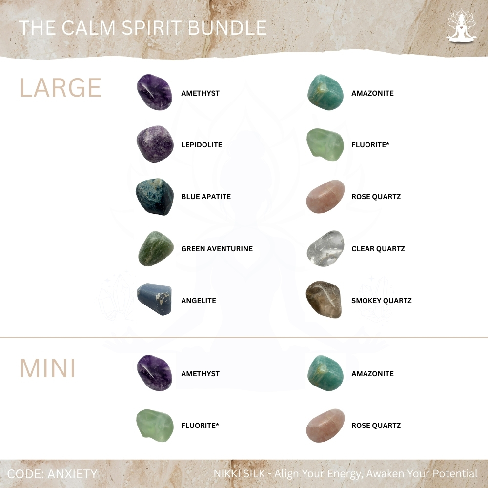 The Calm Spirit Bundle is designed for anyone seeking relief from overwhelm, mental tension and emotional heaviness, helping soothe the mind, settle the heart and restore grounded clarity. These crystals work together to quiet racing thoughts, release anxiety and bring your energy back into a centred, steady state, supporting a calmer nervous system and clearer inner perspective for those wanting softness, stability and mindful presence in daily life. Each stone has been carefully chosen to offer gentle emotional support, intuitive clarity and peaceful grounding, and comes with guidance on its purpose, use and care, making this bundle ideal for both beginners and experienced crystal lovers.