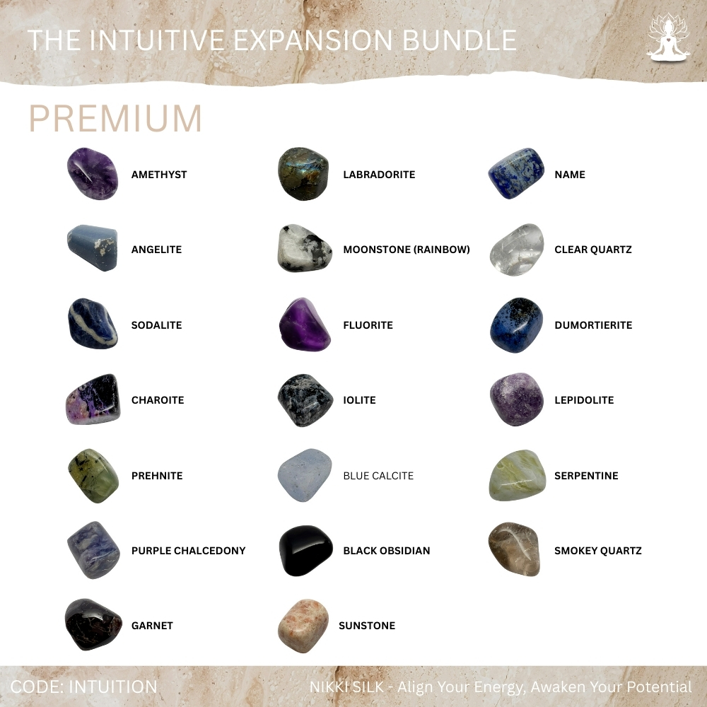 The Intuitive Expansion Bundle is crafted for those ready to deepen spiritual connection and awaken higher awareness. These crystals work in harmony to activate intuition, heighten perception and strengthen energetic protection, allowing exploration of psychic ability with clarity and confidence. Each stone supports Third Eye and Crown expansion while maintaining grounding and emotional stability, creating balance within awakening. This collection empowers you to trust your inner guidance, connect with higher realms and expand consciously – feeling protected, aligned and supported as your spiritual journey unfolds.