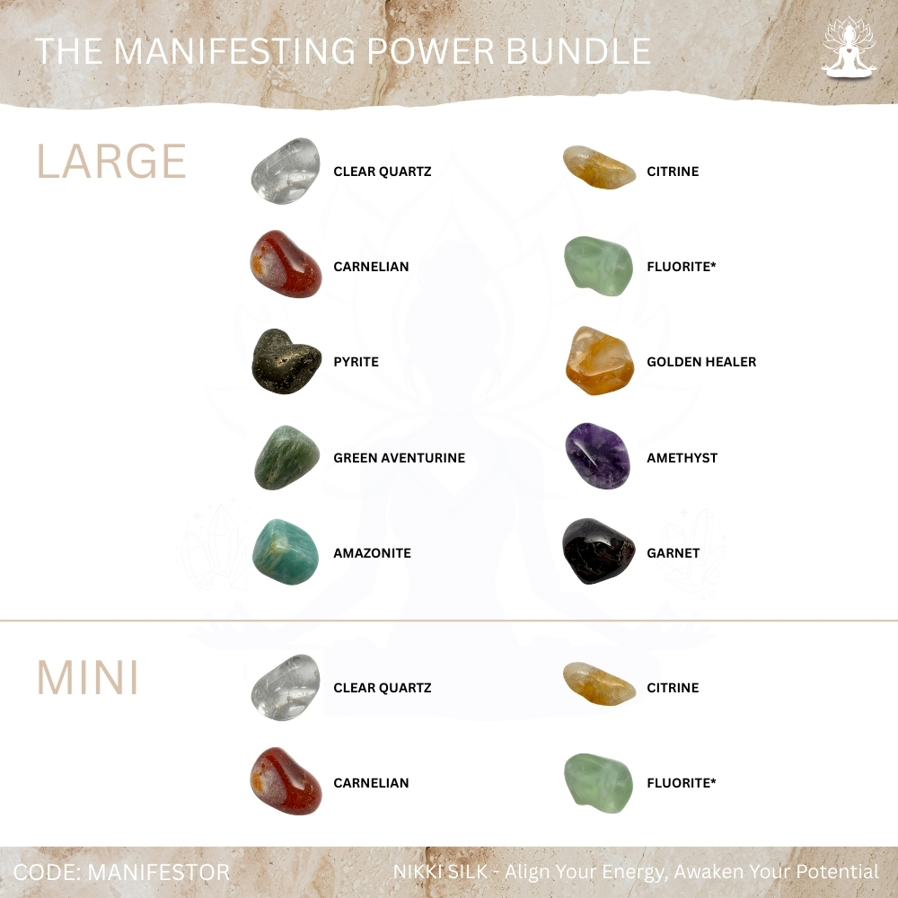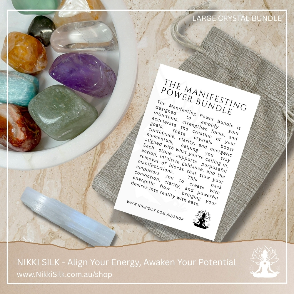 The Manifesting Power Bundle is designed for anyone ready to amplify their intentions, strengthen their focus and accelerate their manifestation journey, supporting clarity, confidence and energetic momentum so you can stay aligned with what you are calling into your life. These crystals work together to remove energetic blocks, boost intuitive guidance and raise your vibration, helping your desires flow toward you more easily while encouraging decisive action, mental clarity and confident alignment. Each stone has been carefully selected to support purposeful action, intuitive awareness, clarity and courageous creation, and comes with guidance on its purpose, use and care, making this bundle ideal for both beginners and experienced crystal lovers.