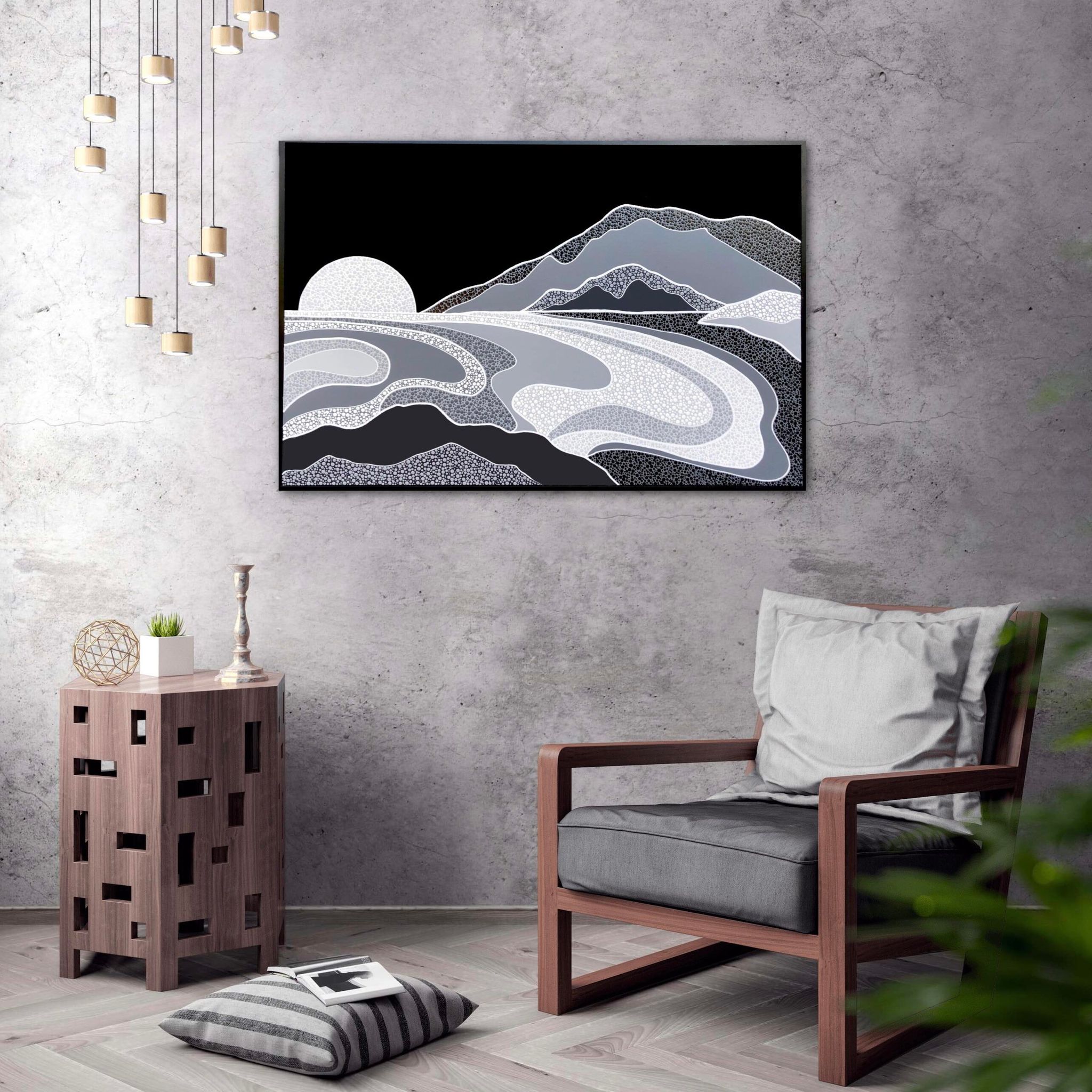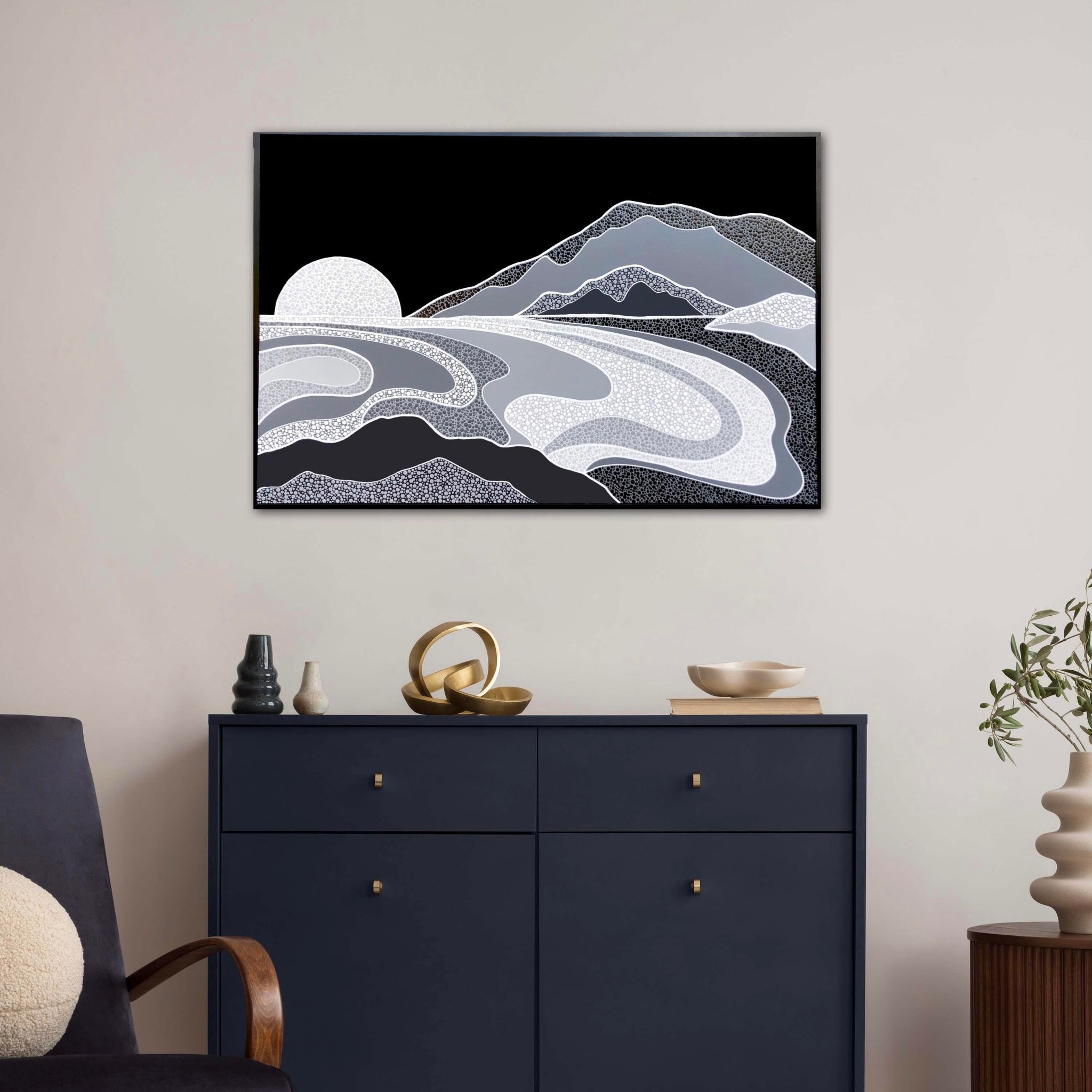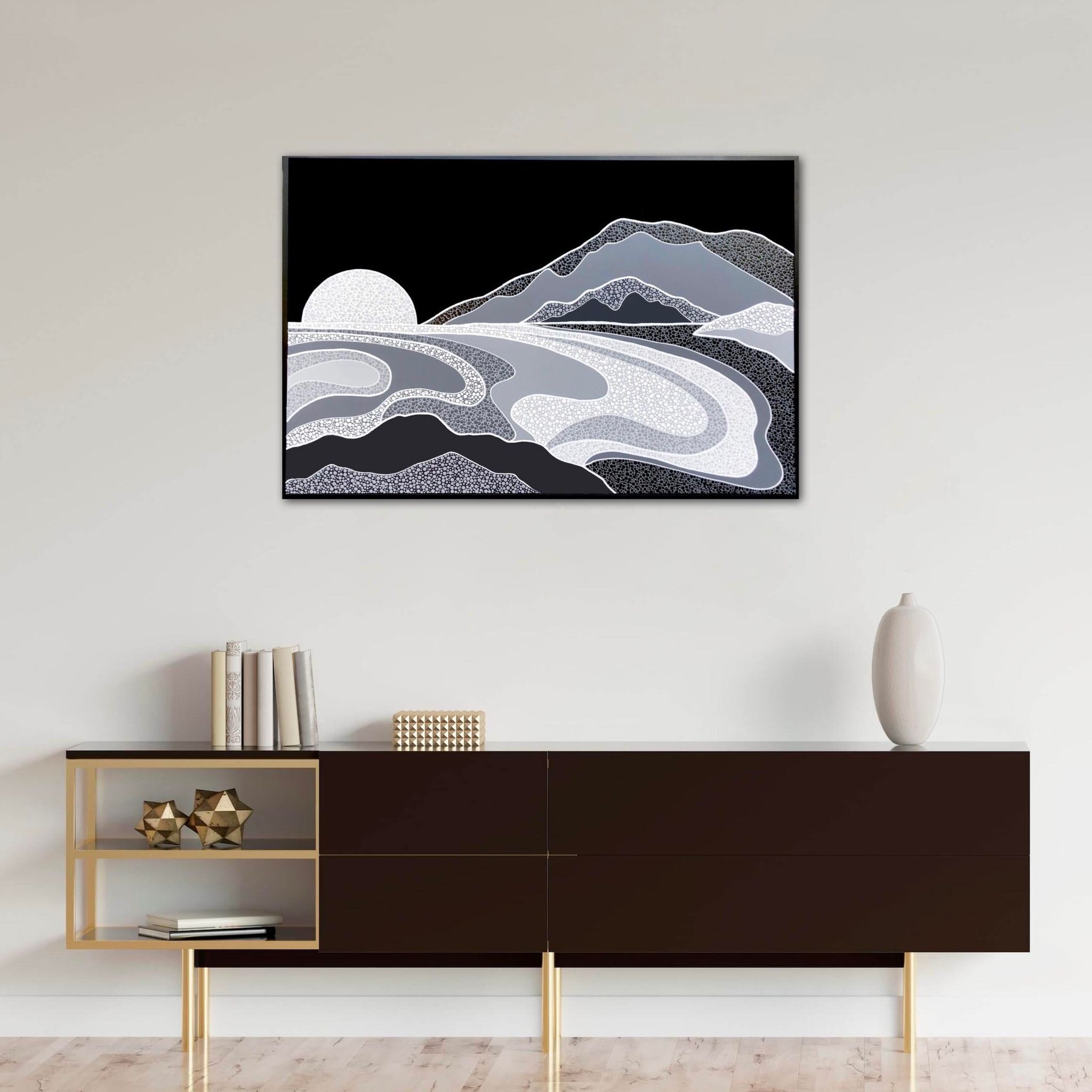 Acrylic Paint on Recycled/2nd Hand Black Gallery Float Framed Stretched Vinyl Canvas