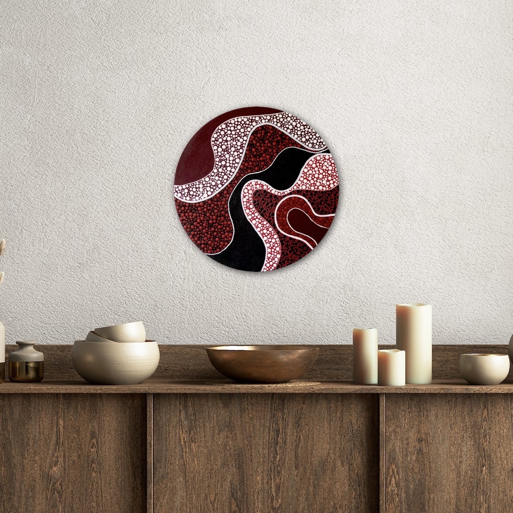 Nature, particularly the Australian landscapes she's explored remains a powerful muse. Her colour palettes echo the serenity of sunrises and sunsets—blending warm earthy tones with cool, introspective hues and vibrant splashes of joyful energy. For years, Nikki kept the spiritual side of her process private, fearing it might be misunderstood. But embracing her truth has allowed her to share the essence of what makes her art unique. Each of her creations is more than a painting—it’s a visual story infused with feeling, intention, and the quiet whispers of the universe, encouraging others to honour their own inner voice.