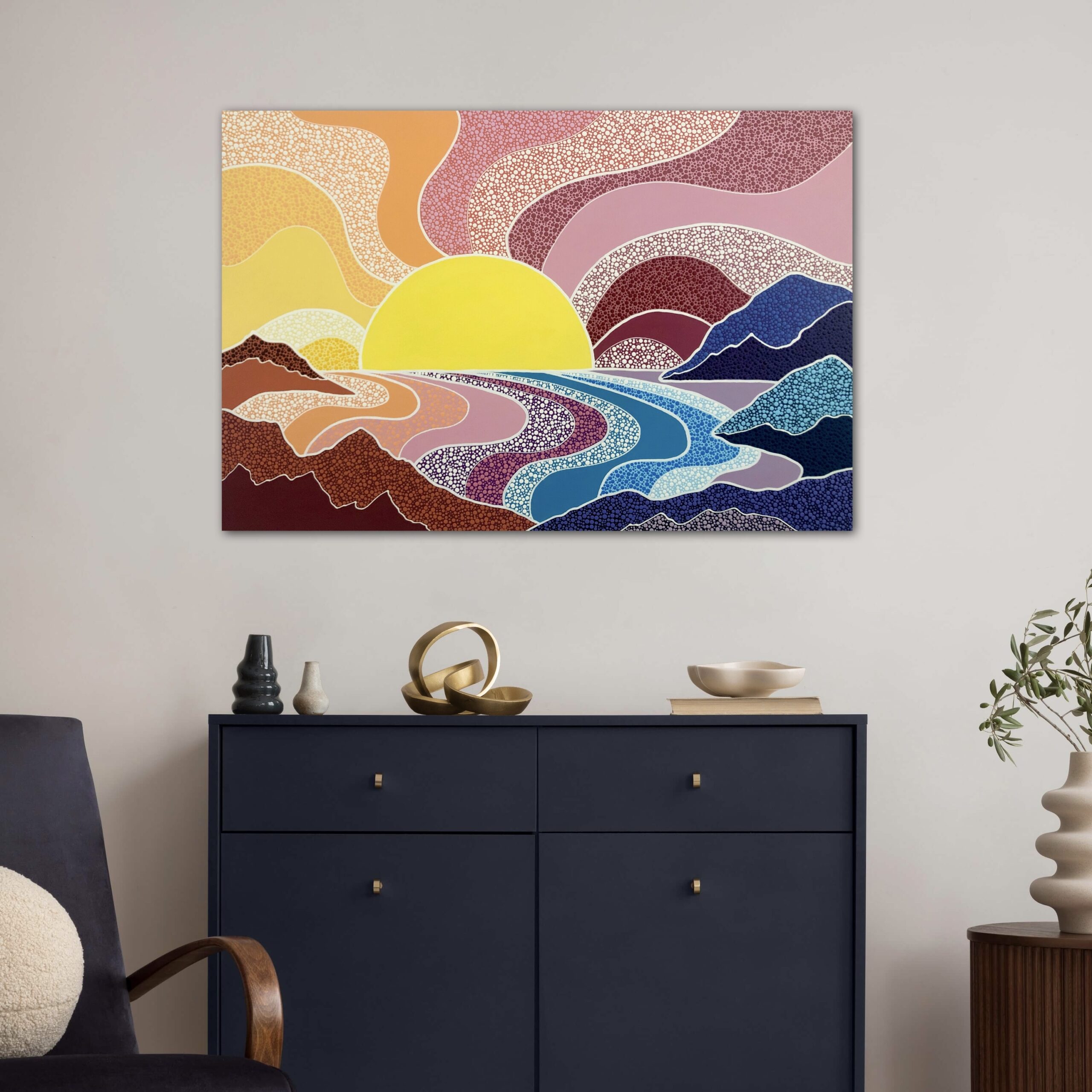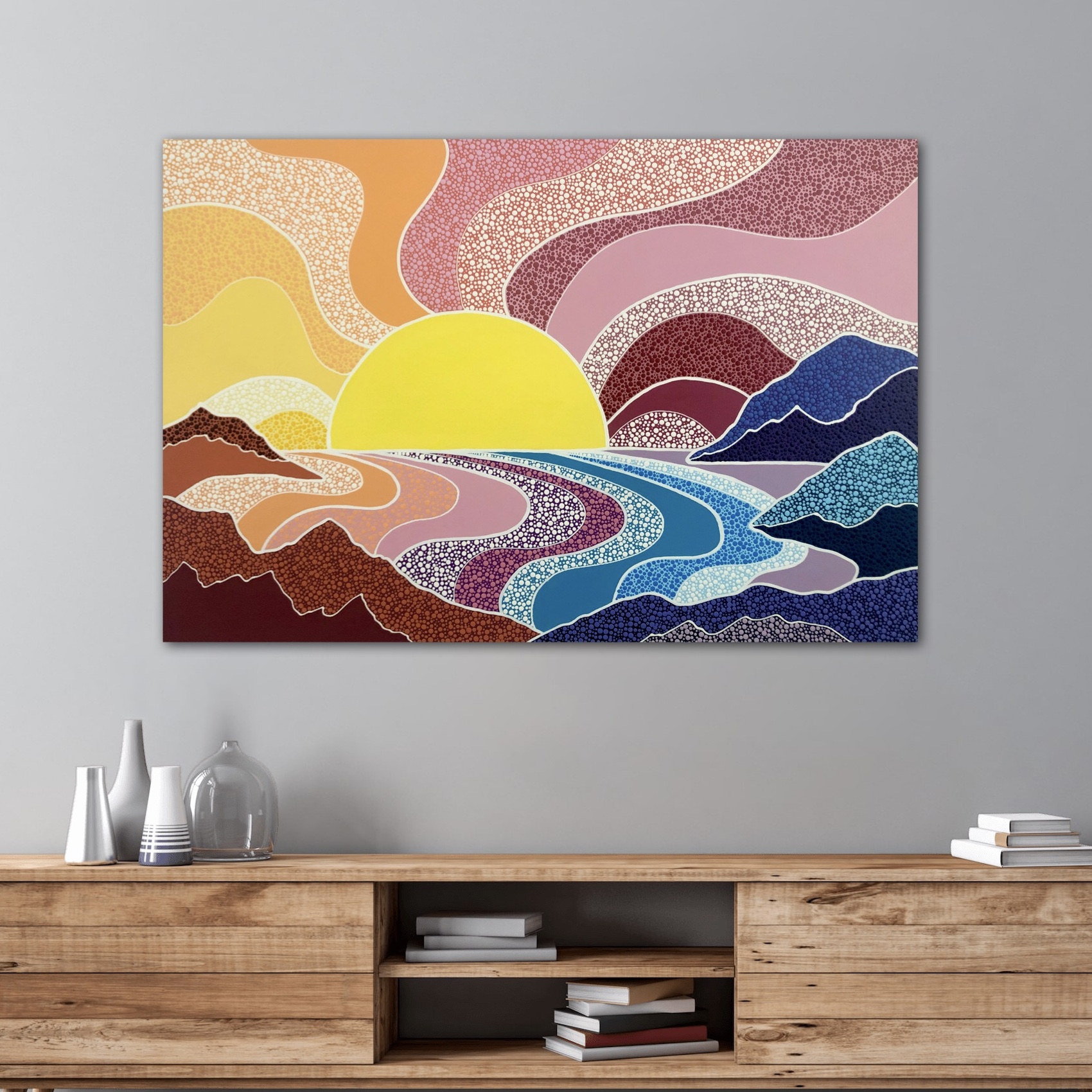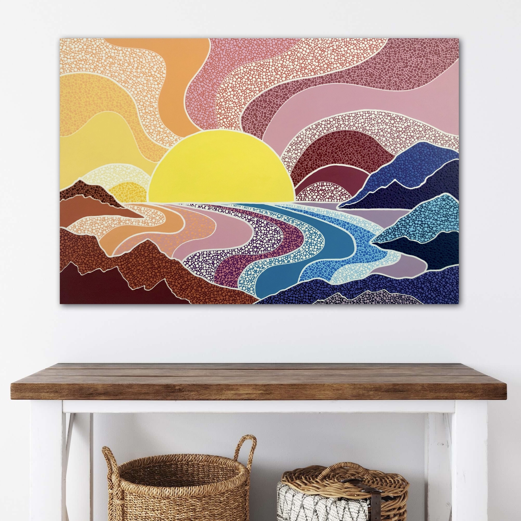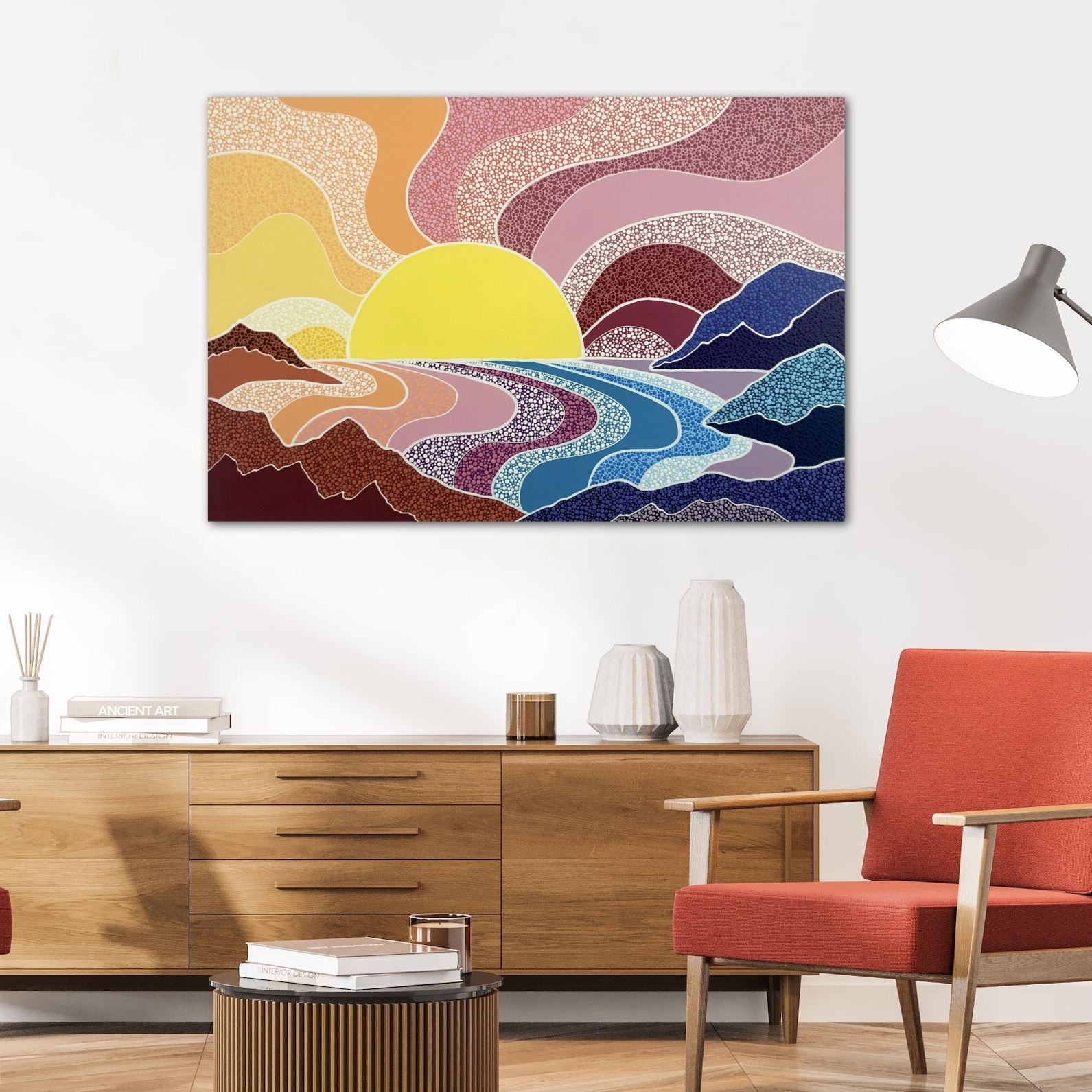 Nature, particularly the Australian landscapes she's explored remains a powerful muse. Her colour palettes echo the serenity of sunrises and sunsets—blending warm earthy tones with cool, introspective hues and vibrant splashes of joyful energy. For years, Nikki kept the spiritual side of her process private, fearing it might be misunderstood. But embracing her truth has allowed her to share the essence of what makes her art unique. Each of her creations is more than a painting—it’s a visual story infused with feeling, intention, and the quiet whispers of the universe, encouraging others to honour their own inner voice.