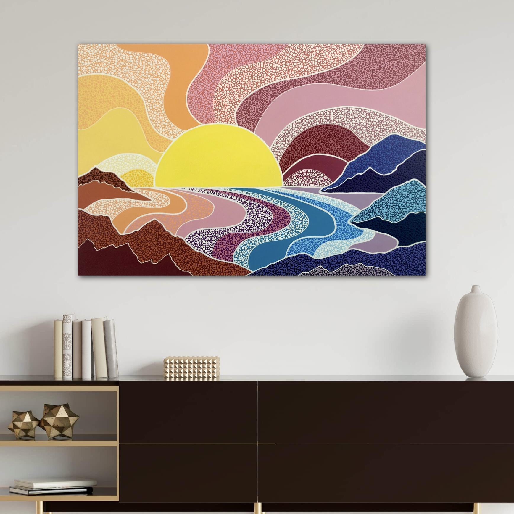 Nikki creates her artwork through an intuitive and spiritual process, allowing visions that come to her in dreams, meditation, or spontaneous moments to guide each piece without the use of sketches or formal plans. Drawing inspiration from her French heritage and the Pointillism technique pioneered by Georges Seurat, Nikki has reimagined this dot-based art form into a modern, expressive style that connects deeply with both the visible and unseen realms.