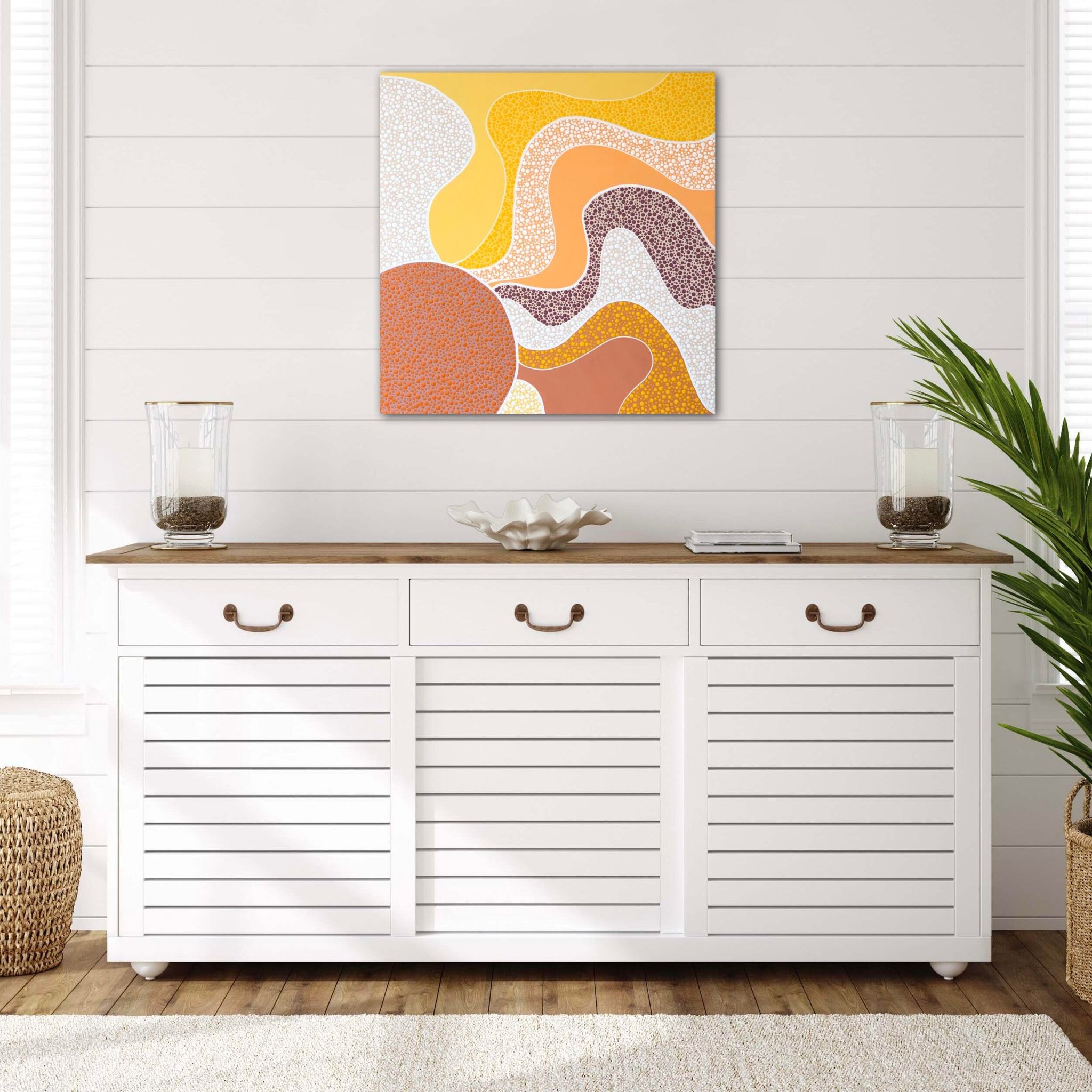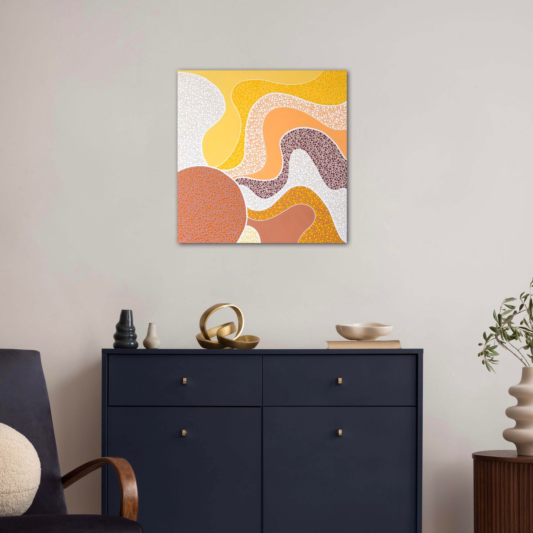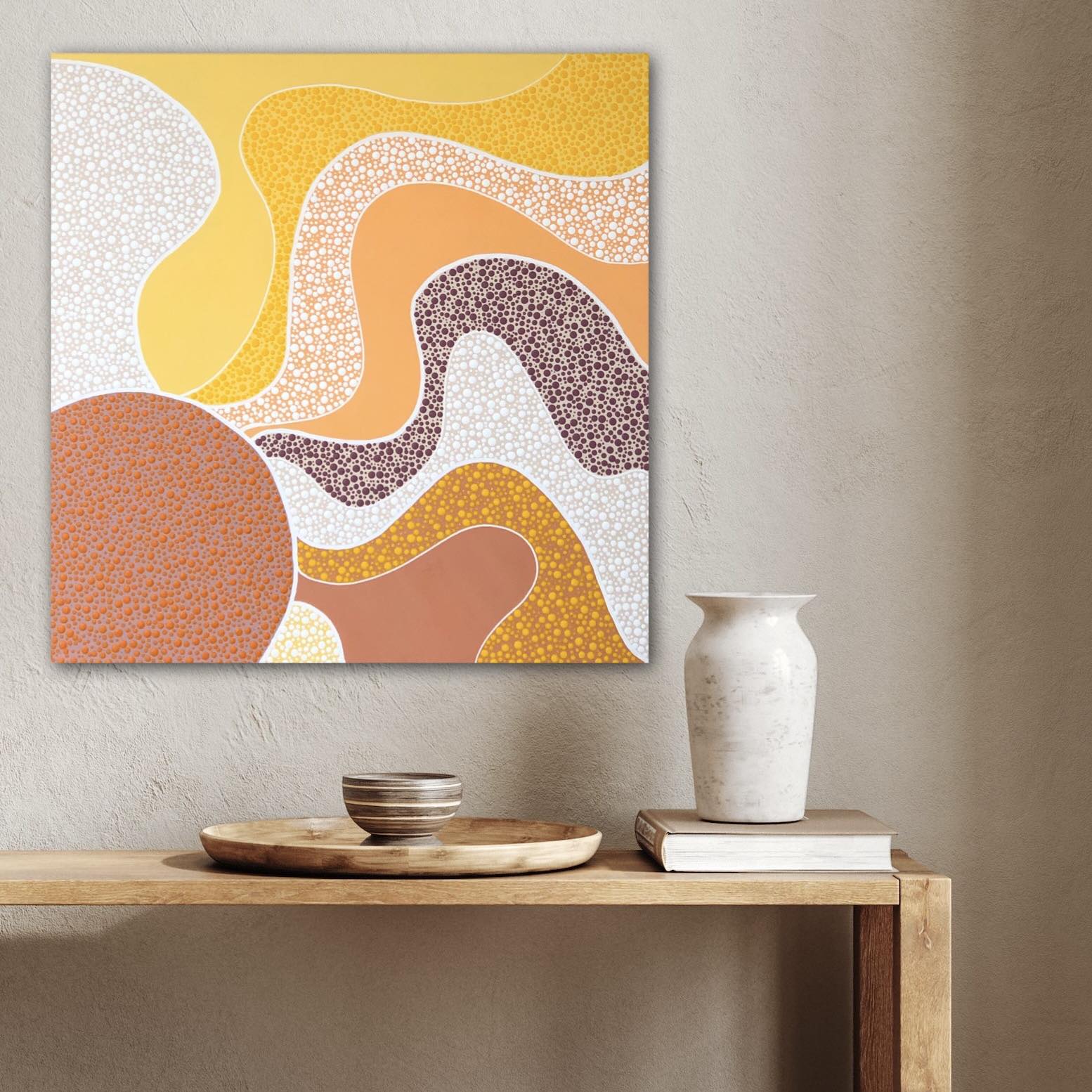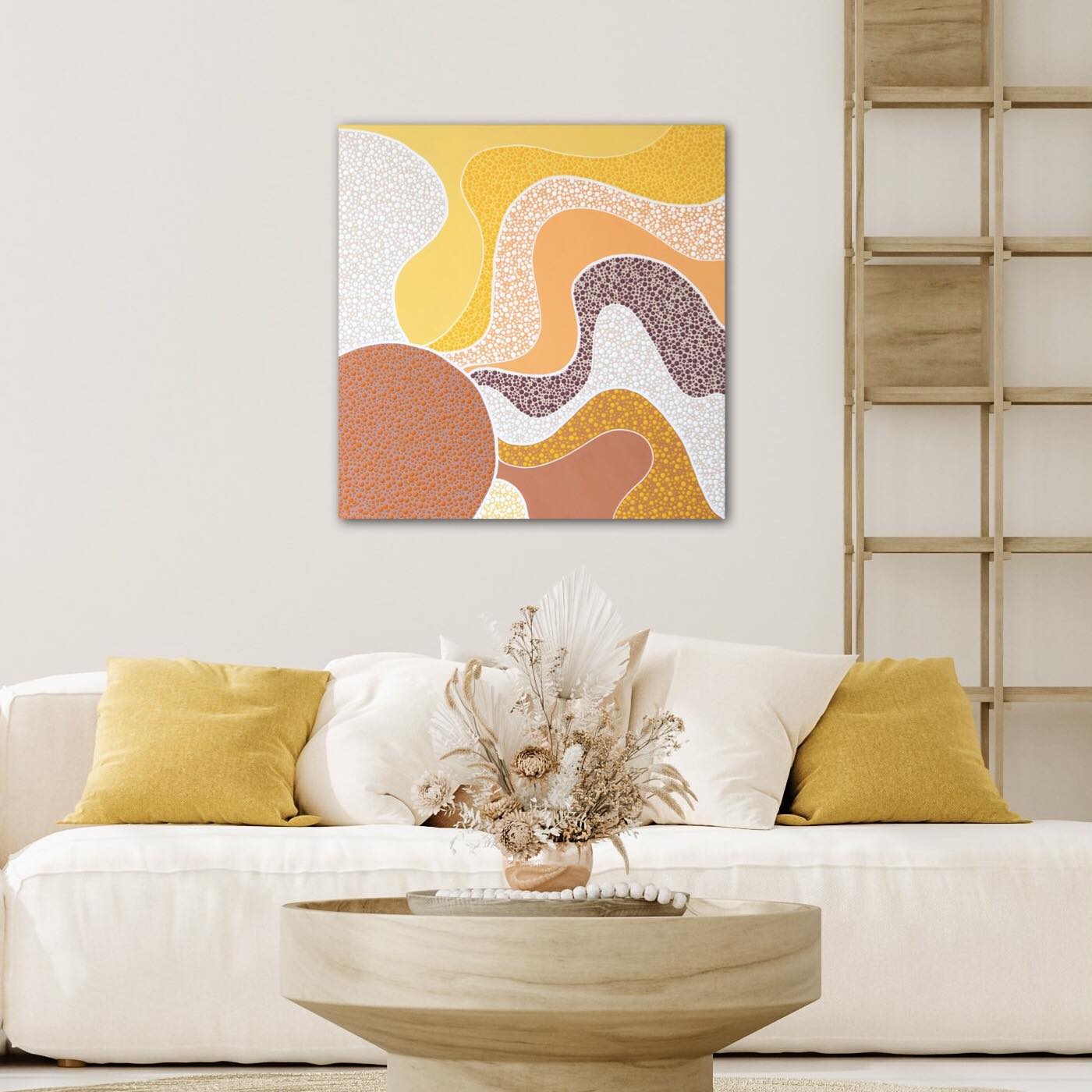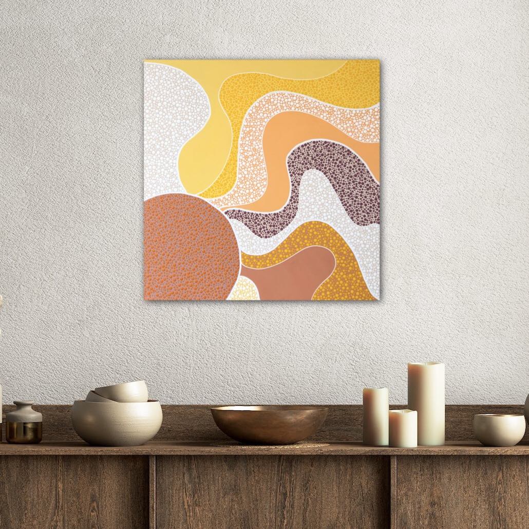 Nature, particularly the Australian landscapes she's explored remains a powerful muse. Her colour palettes echo the serenity of sunrises and sunsets—blending warm earthy tones with cool, introspective hues and vibrant splashes of joyful energy. For years, Nikki kept the spiritual side of her process private, fearing it might be misunderstood. But embracing her truth has allowed her to share the essence of what makes her art unique. Each of her creations is more than a painting—it’s a visual story infused with feeling, intention, and the quiet whispers of the universe, encouraging others to honour their own inner voice.