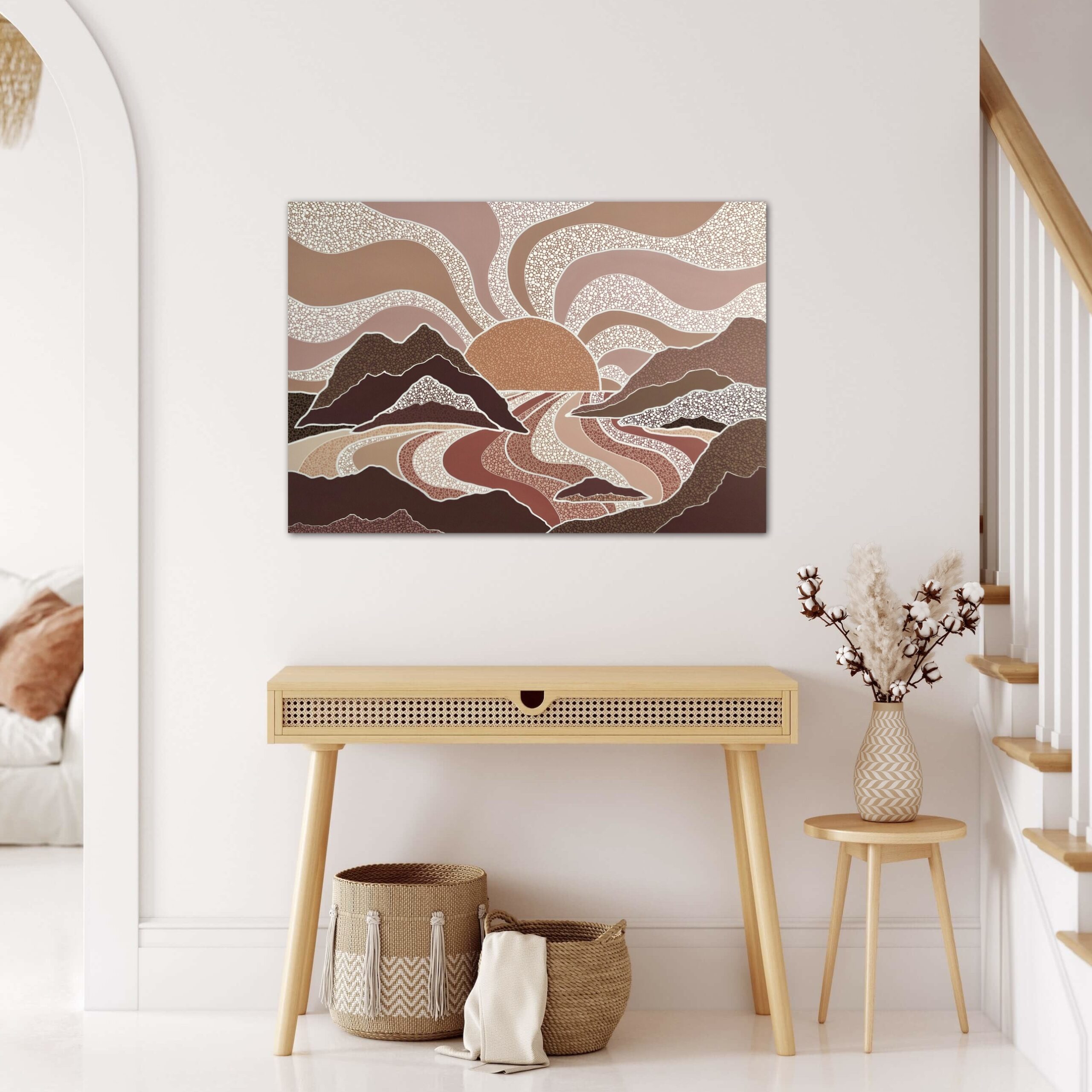 Nature, particularly the Australian landscapes she's explored remains a powerful muse. Her colour palettes echo the serenity of sunrises and sunsets—blending warm earthy tones with cool, introspective hues and vibrant splashes of joyful energy. For years, Nikki kept the spiritual side of her process private, fearing it might be misunderstood. But embracing her truth has allowed her to share the essence of what makes her art unique. Each of her creations is more than a painting—it’s a visual story infused with feeling, intention, and the quiet whispers of the universe, encouraging others to honour their own inner voice.