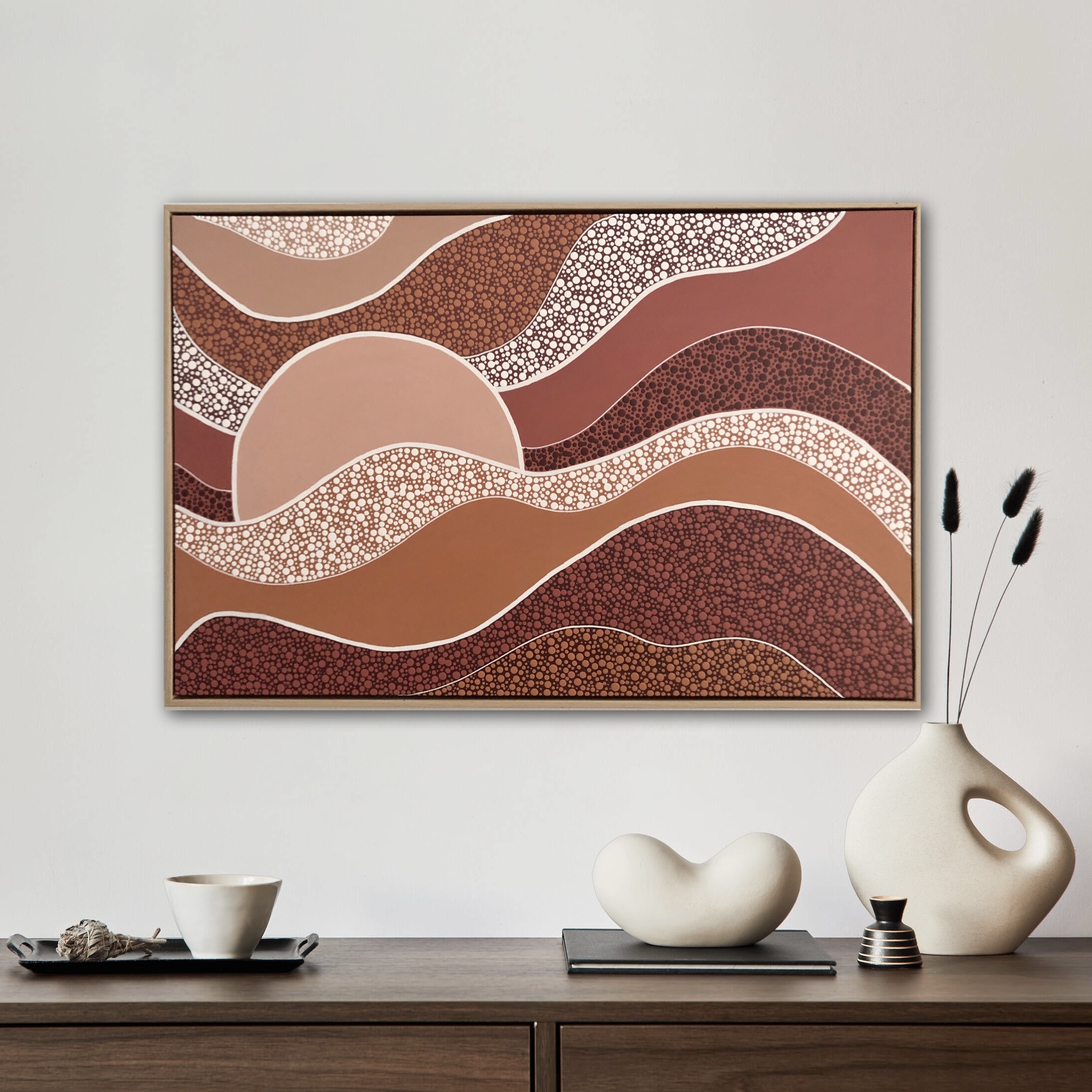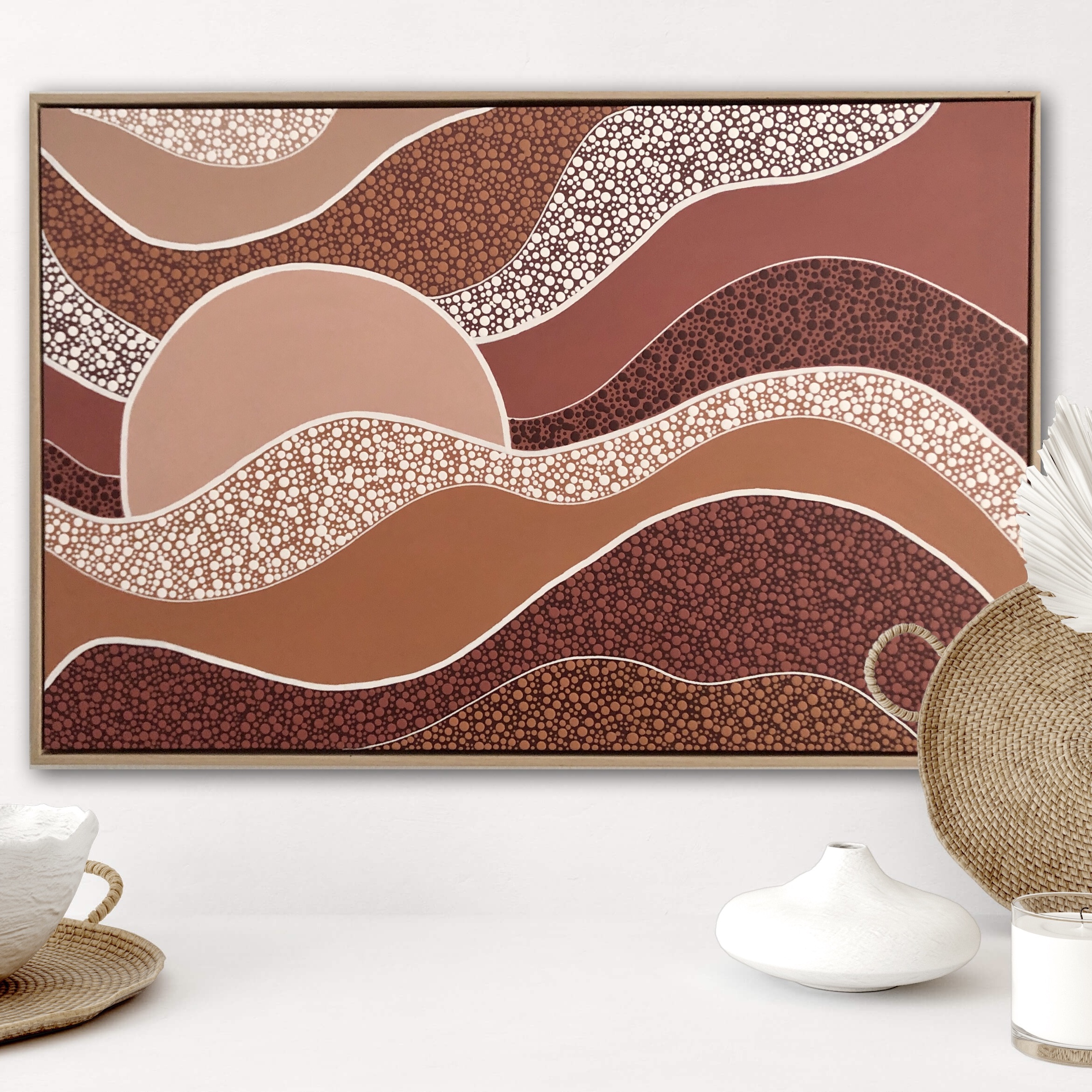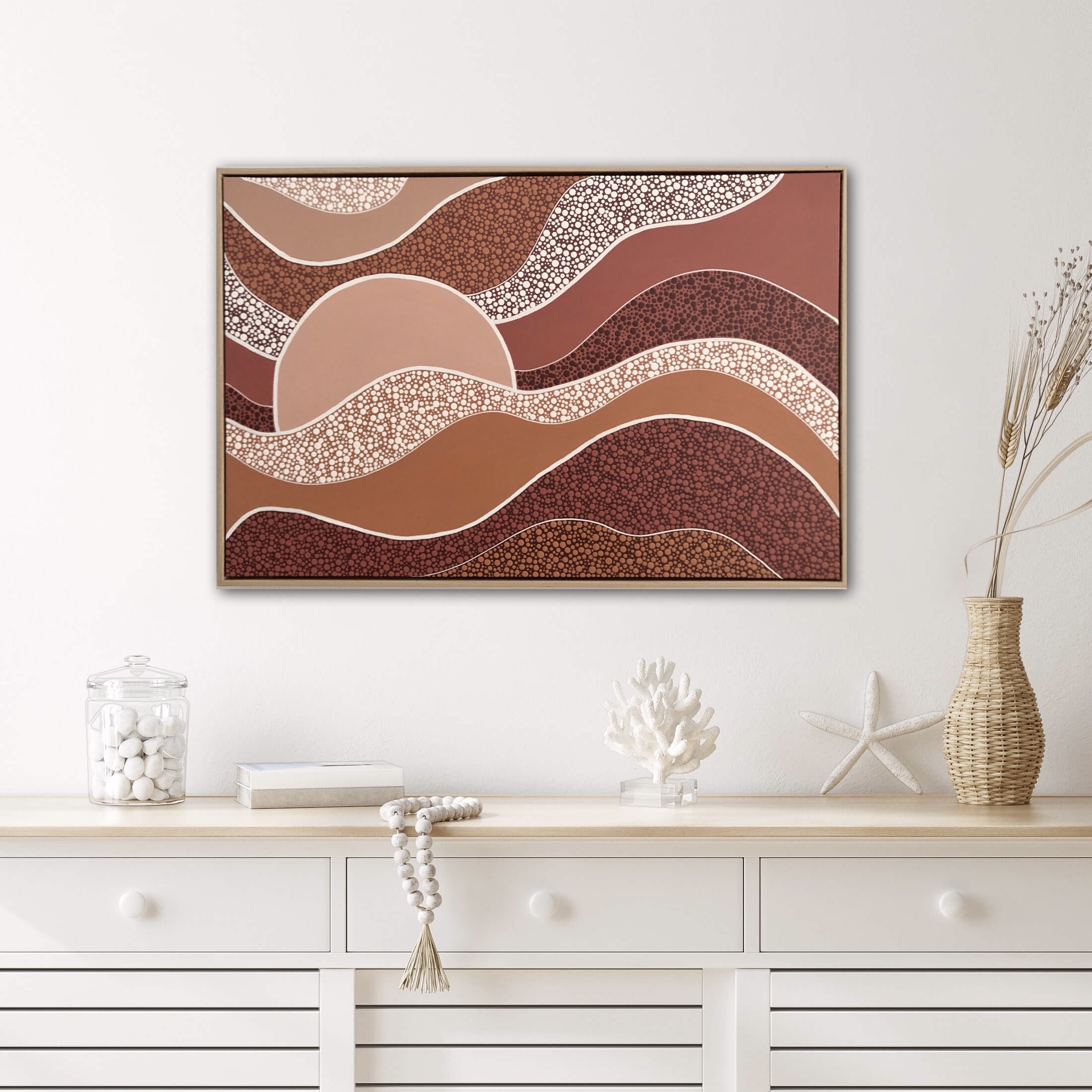 Nature, particularly the Australian landscapes she's explored remains a powerful muse. Her colour palettes echo the serenity of sunrises and sunsets—blending warm earthy tones with cool, introspective hues and vibrant splashes of joyful energy. For years, Nikki kept the spiritual side of her process private, fearing it might be misunderstood. But embracing her truth has allowed her to share the essence of what makes her art unique. Each of her creations is more than a painting—it’s a visual story infused with feeling, intention, and the quiet whispers of the universe, encouraging others to honour their own inner voice.