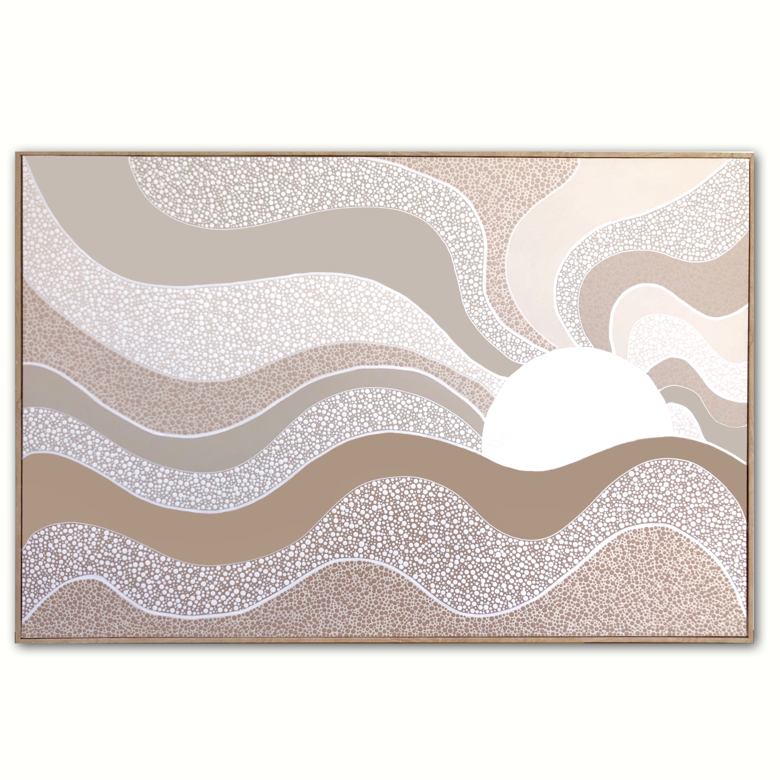 Nature, particularly the Australian landscapes she's explored remains a powerful muse. Her colour palettes echo the serenity of sunrises and sunsets—blending warm earthy tones with cool, introspective hues and vibrant splashes of joyful energy. For years, Nikki kept the spiritual side of her process private, fearing it might be misunderstood. But embracing her truth has allowed her to share the essence of what makes her art unique. Each of her creations is more than a painting—it’s a visual story infused with feeling, intention, and the quiet whispers of the universe, encouraging others to honour their own inner voice.
