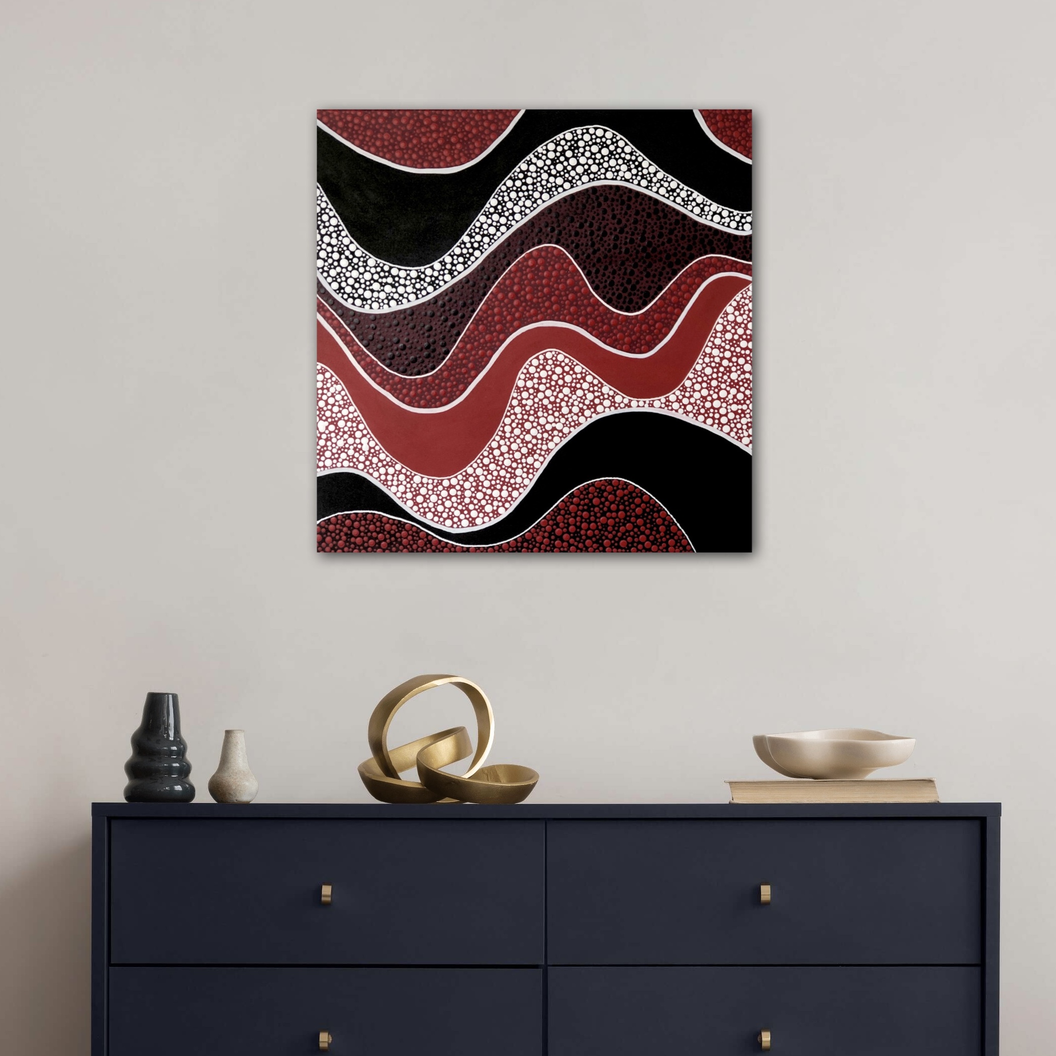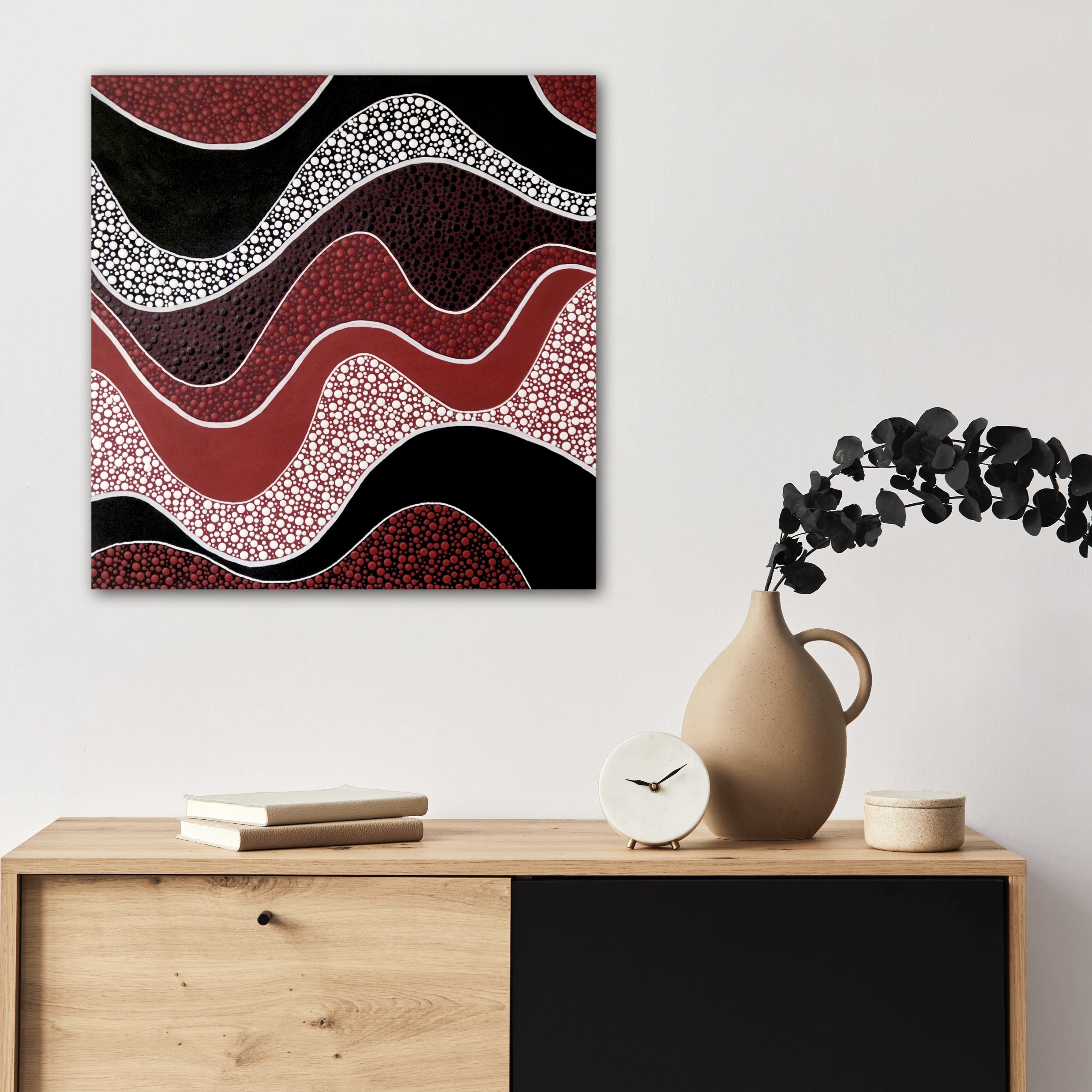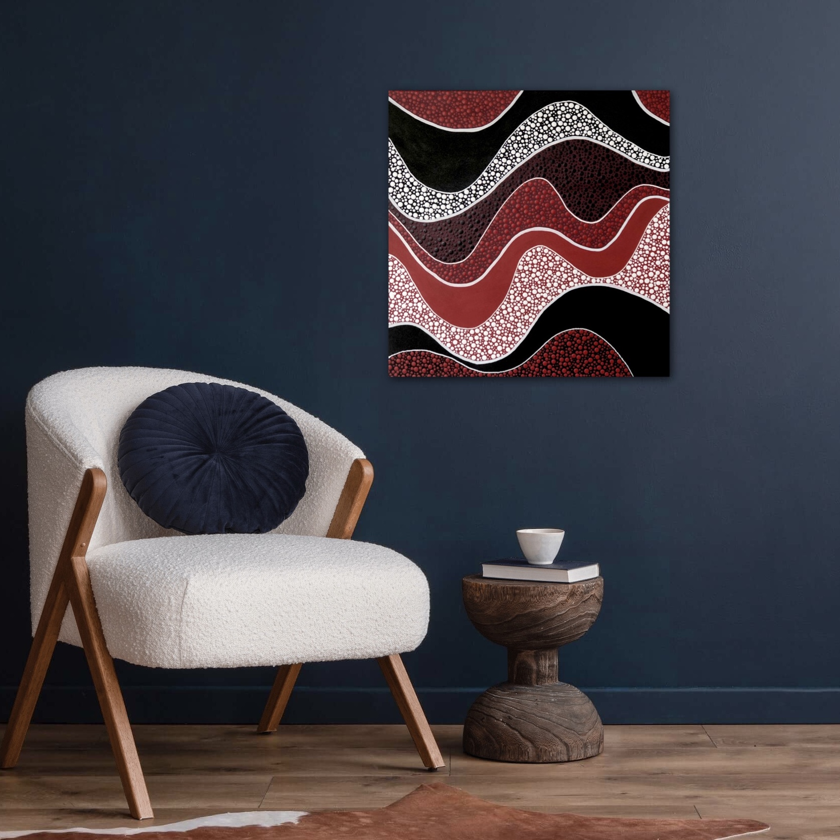 Nature, particularly the Australian landscapes she's explored remains a powerful muse. Her colour palettes echo the serenity of sunrises and sunsets—blending warm earthy tones with cool, introspective hues and vibrant splashes of joyful energy. For years, Nikki kept the spiritual side of her process private, fearing it might be misunderstood. But embracing her truth has allowed her to share the essence of what makes her art unique. Each of her creations is more than a painting—it’s a visual story infused with feeling, intention, and the quiet whispers of the universe, encouraging others to honour their own inner voice.