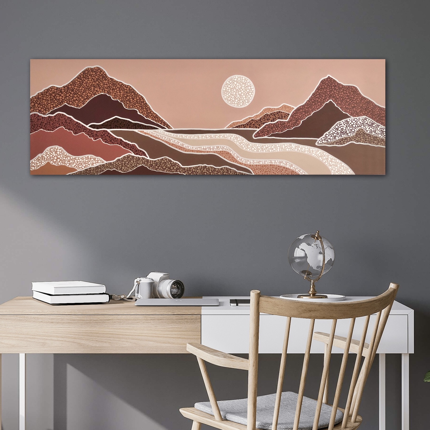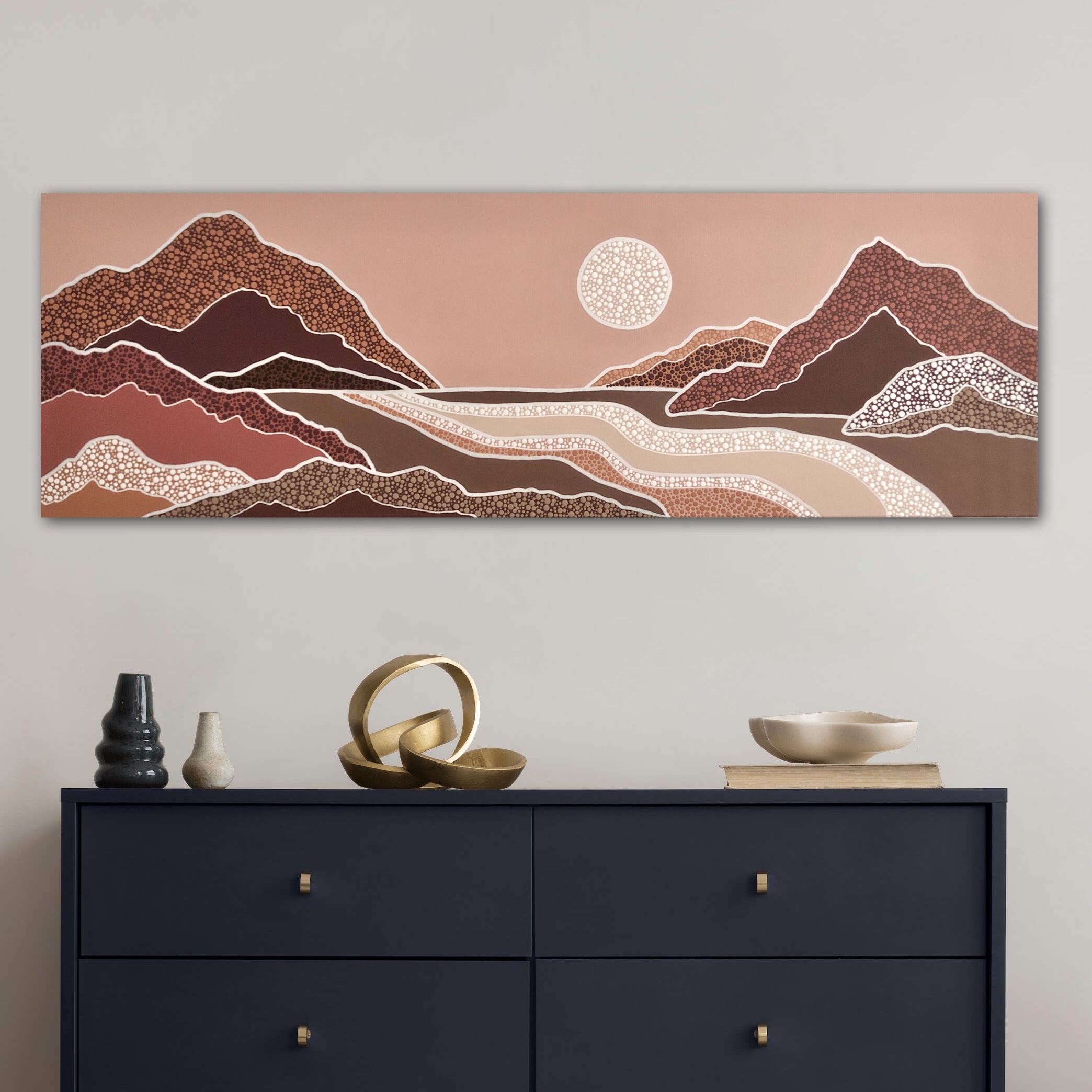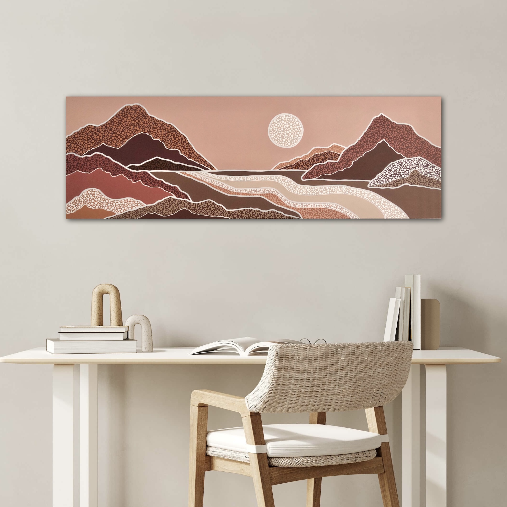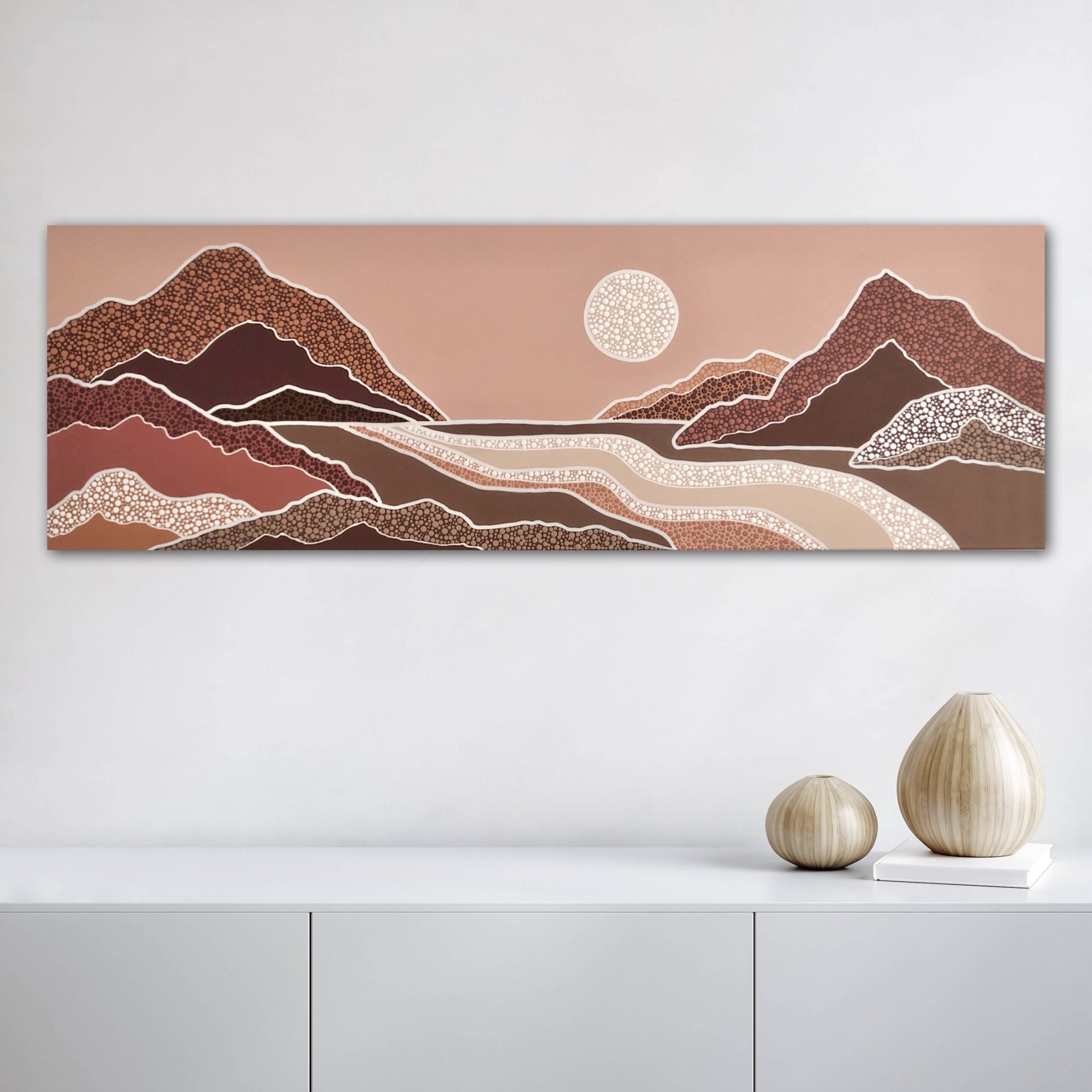 Nature, particularly the Australian landscapes she's explored remains a powerful muse. Her colour palettes echo the serenity of sunrises and sunsets—blending warm earthy tones with cool, introspective hues and vibrant splashes of joyful energy. For years, Nikki kept the spiritual side of her process private, fearing it might be misunderstood. But embracing her truth has allowed her to share the essence of what makes her art unique. Each of her creations is more than a painting—it’s a visual story infused with feeling, intention, and the quiet whispers of the universe, encouraging others to honour their own inner voice.