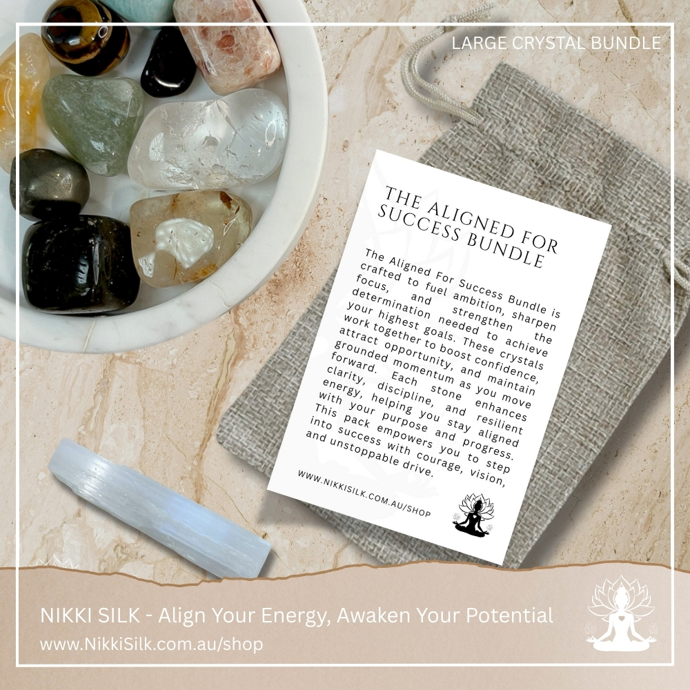 The Aligned For Success Bundle is designed for anyone ready to elevate their ambition, sharpen their focus and pursue their highest goals with confidence, strengthening determination and supporting aligned action while keeping your energy grounded and balanced. These crystals work together to attract opportunity, boost confidence and maintain steady momentum, enhancing discipline, emotional resilience and intuitive decision-making for consistent, purposeful progress in career, business or creative pursuits. Each stone has been carefully chosen to strengthen vision, uplift clarity, encourage resilience and keep you aligned with your purpose, and comes with guidance on its use, purpose and care, making this bundle ideal for both beginners and experienced crystal lovers.
