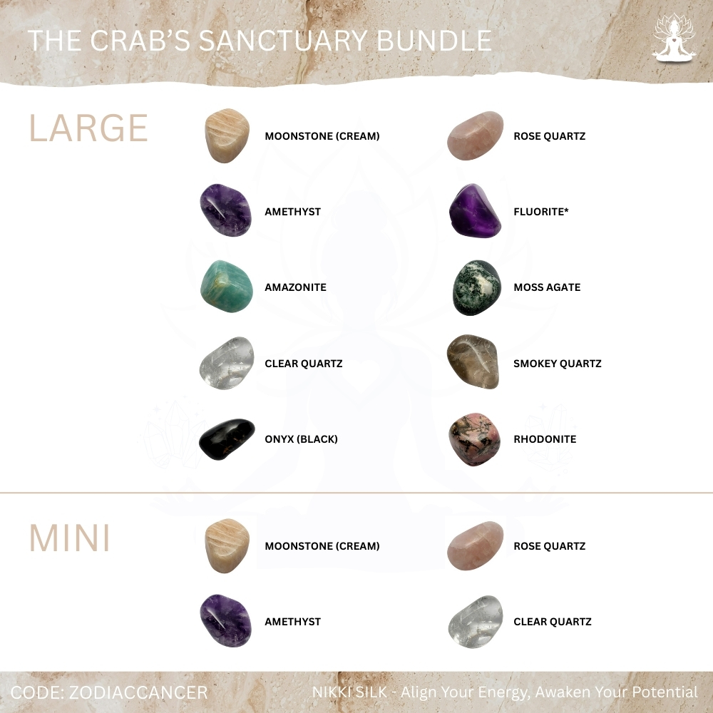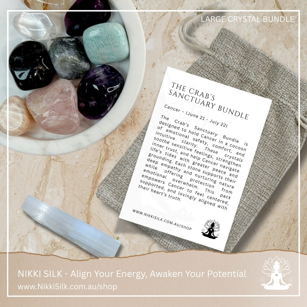 The Crab’s Sanctuary Bundle is designed for Cancer’s deeply emotional, intuitive and nurturing nature, helping you feel comforted, grounded and protected as you move through your inner world. Because Cancer’s sensitivity and emotional depth can sometimes become overwhelming, these crystals work together to soothe heightened feelings, strengthen inner trust and create a stable sense of emotional security, making this bundle perfect for cultivating calm, clarity and a safe space to recharge. Each stone has been carefully chosen to support emotional balance, intuitive awareness, compassionate self-care and gentle energetic protection, and comes with guidance on its purpose, use and care, making it ideal for both beginners and experienced crystal lovers.