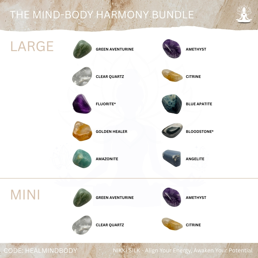 The Mind-Body Harmony Bundle is designed for anyone seeking deeper balance across mental, emotional and physical wellbeing, supporting clarity, grounding and revitalisation to bring your whole system back into alignment. These crystals work together to detoxify heavy energy, strengthen mental focus and stabilise emotions, helping you return to a grounded, centred and energised state while encouraging a healthier rhythm between mind, body and spirit. Each stone has been carefully chosen to promote resilience, holistic harmony, grounded strength and inner alignment, and comes with guidance on its purpose, use and care, making this bundle ideal for both beginners and experienced crystal lovers.