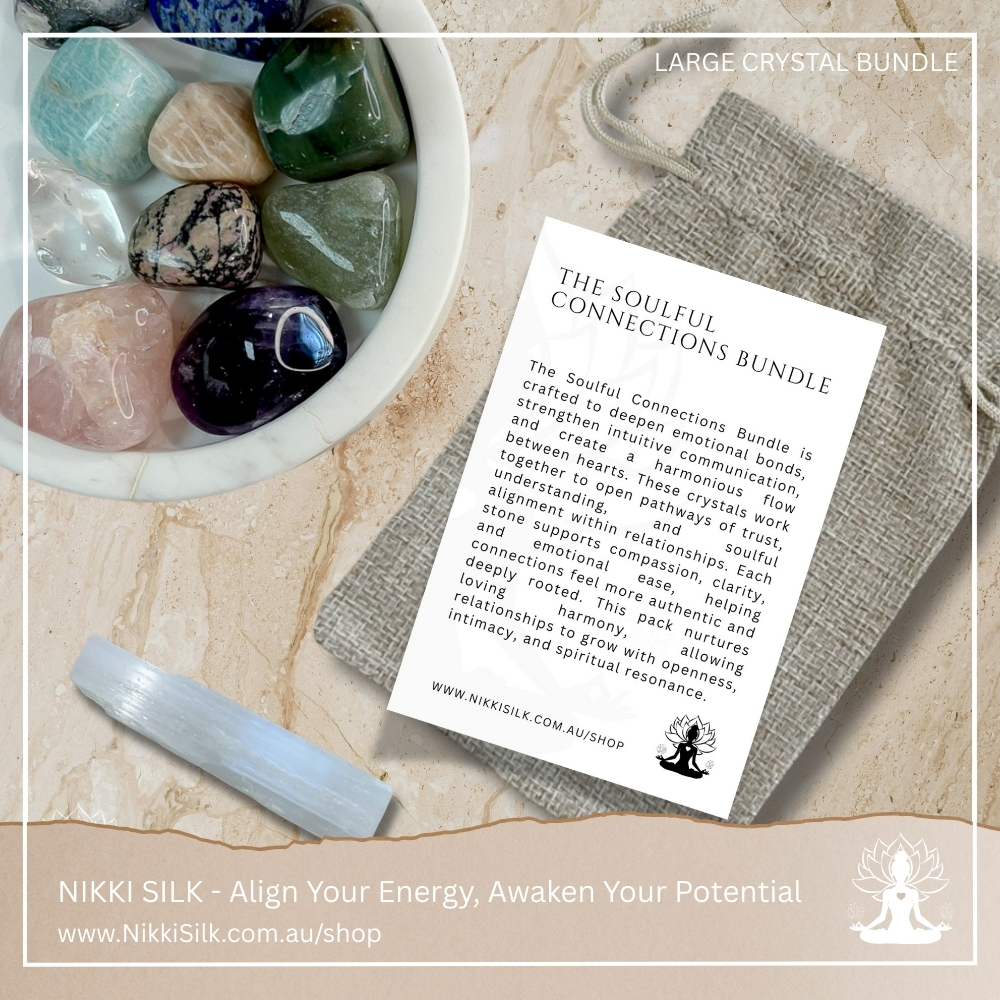 The Soulful Connections Bundle is designed for anyone wanting to deepen emotional bonds, strengthen intuitive communication and cultivate harmony within relationships, opening pathways of trust, understanding and heartfelt alignment. These crystals work together to support compassion, clarity and emotional openness, inviting harmonious flow and intuitive understanding so connections can deepen with ease and authenticity across couples, friendships or family dynamics. Each stone has been carefully selected to enhance emotional clarity, intuitive communication, compassion and loving alignment, and comes with guidance on its purpose, use and care, making this bundle ideal for both beginners and experienced crystal lovers seeking more meaningful, resonant relationships.