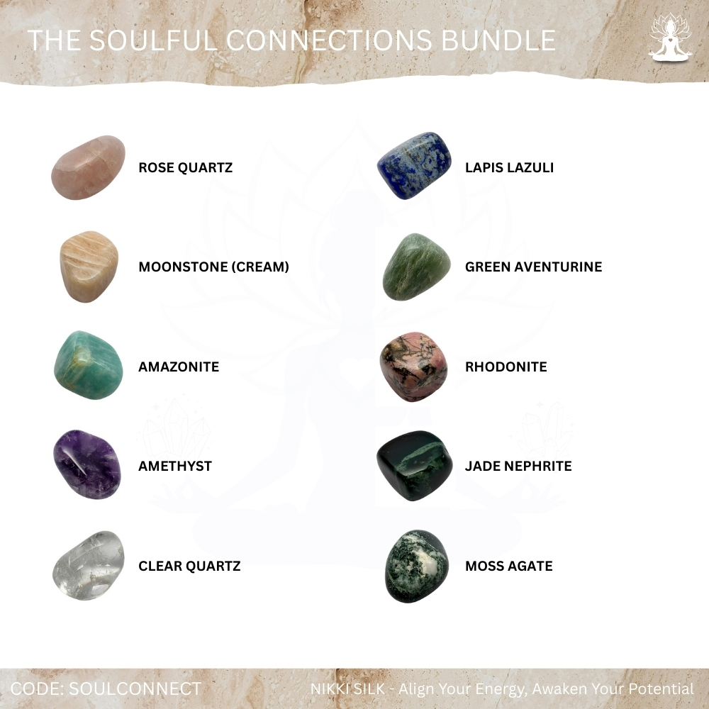 For a complete manifestation toolkit, pair this crystal bundle with my eBook “Soulful Connections – Manifesting Love and Lasting Relationships” from my “Manifest Your Dream Life” ebook series and unlock deeper clarity, alignment and intention