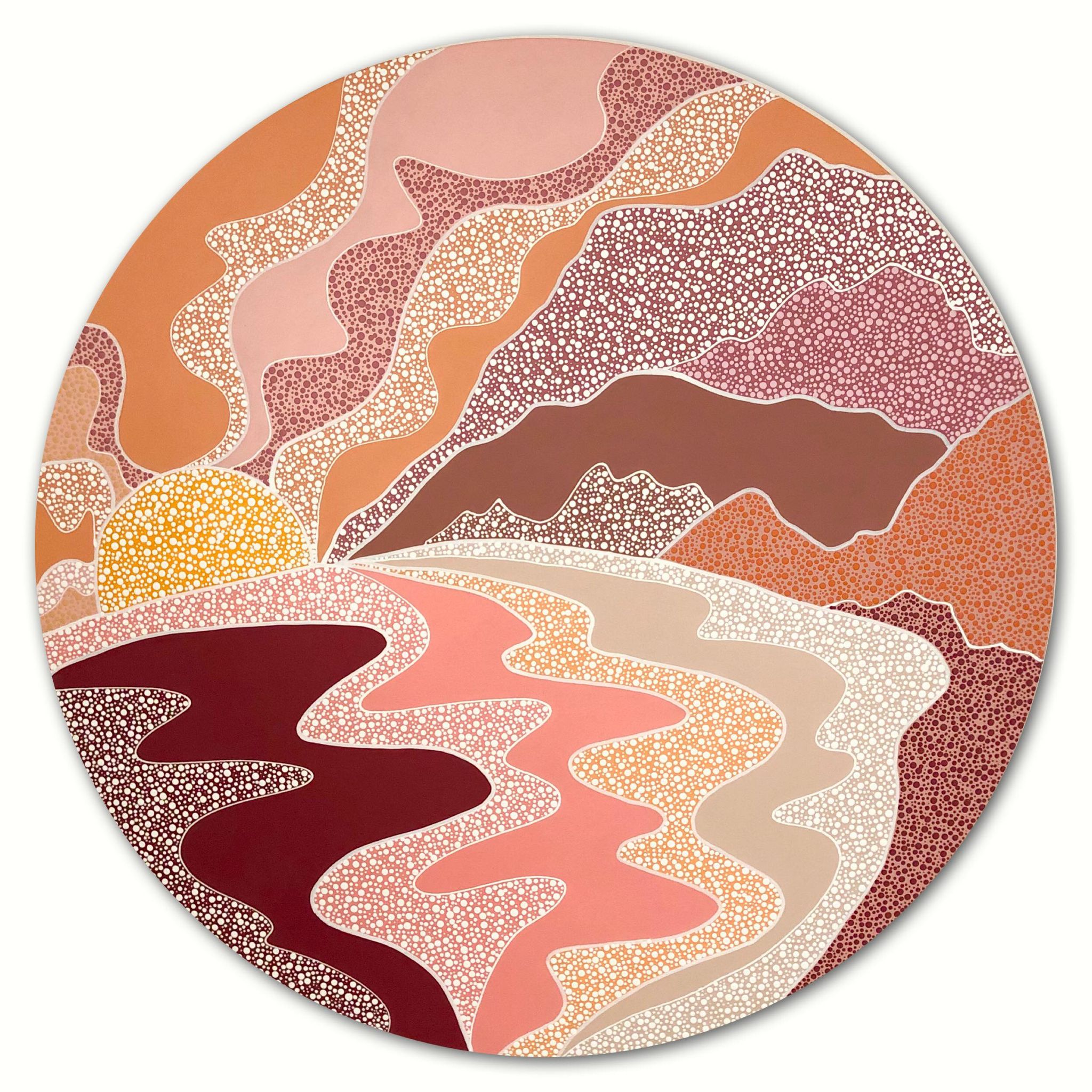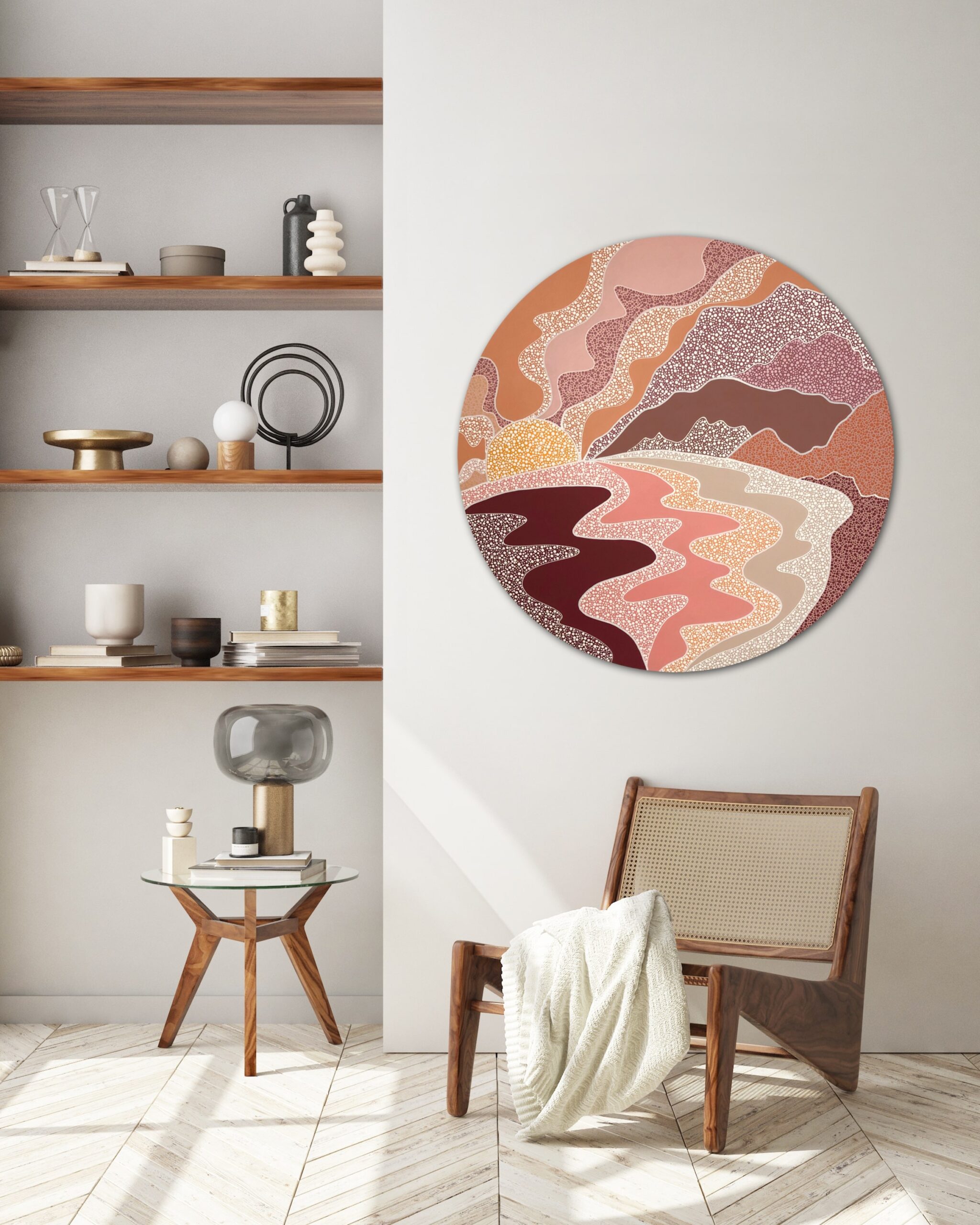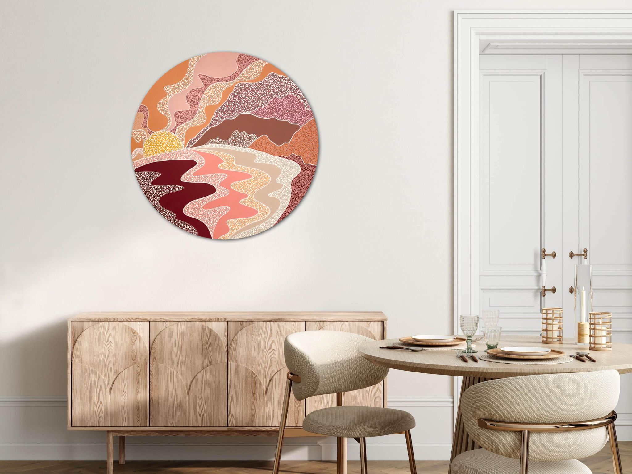 Nature, particularly the Australian landscapes she's explored remains a powerful muse. Her colour palettes echo the serenity of sunrises and sunsets—blending warm earthy tones with cool, introspective hues and vibrant splashes of joyful energy. For years, Nikki kept the spiritual side of her process private, fearing it might be misunderstood. But embracing her truth has allowed her to share the essence of what makes her art unique. Each of her creations is more than a painting—it’s a visual story infused with feeling, intention, and the quiet whispers of the universe, encouraging others to honour their own inner voice.