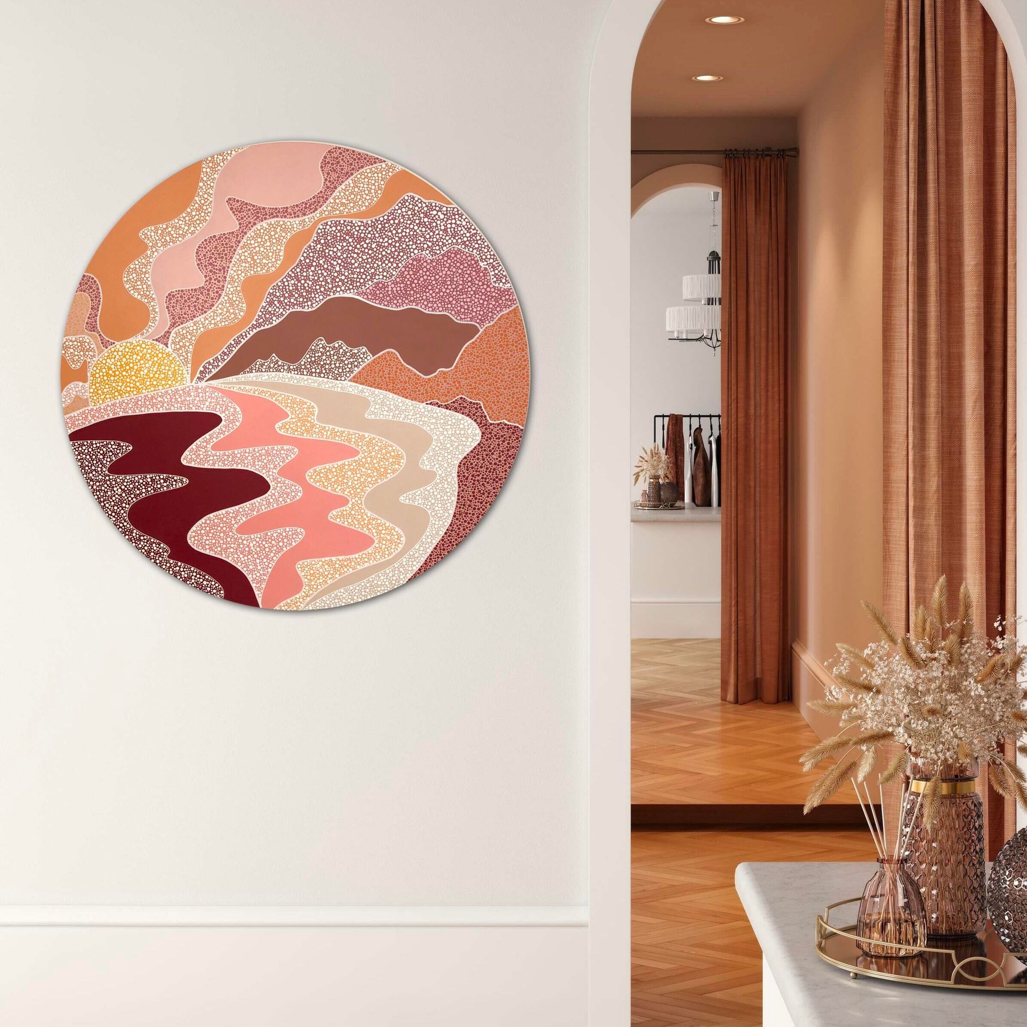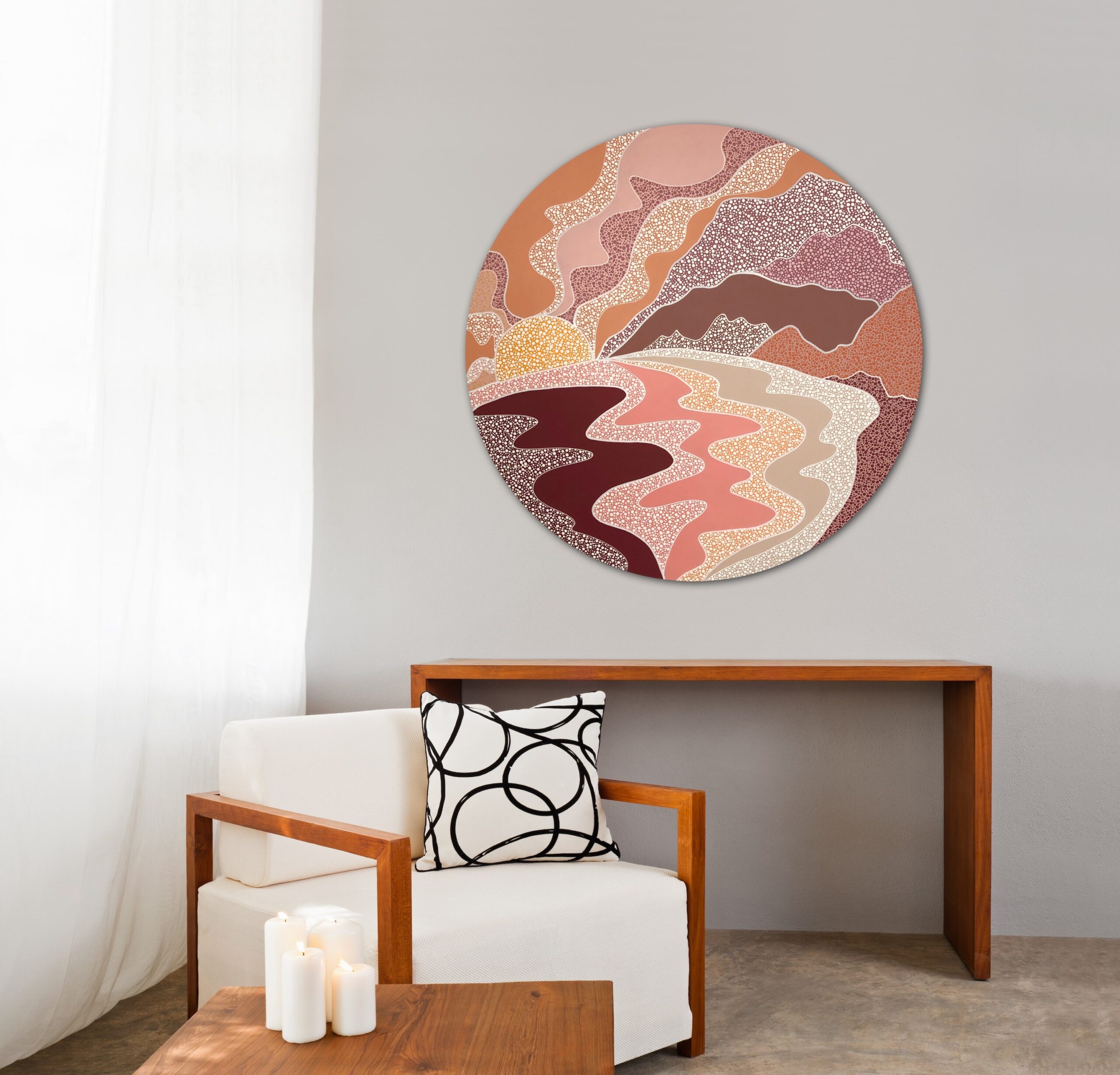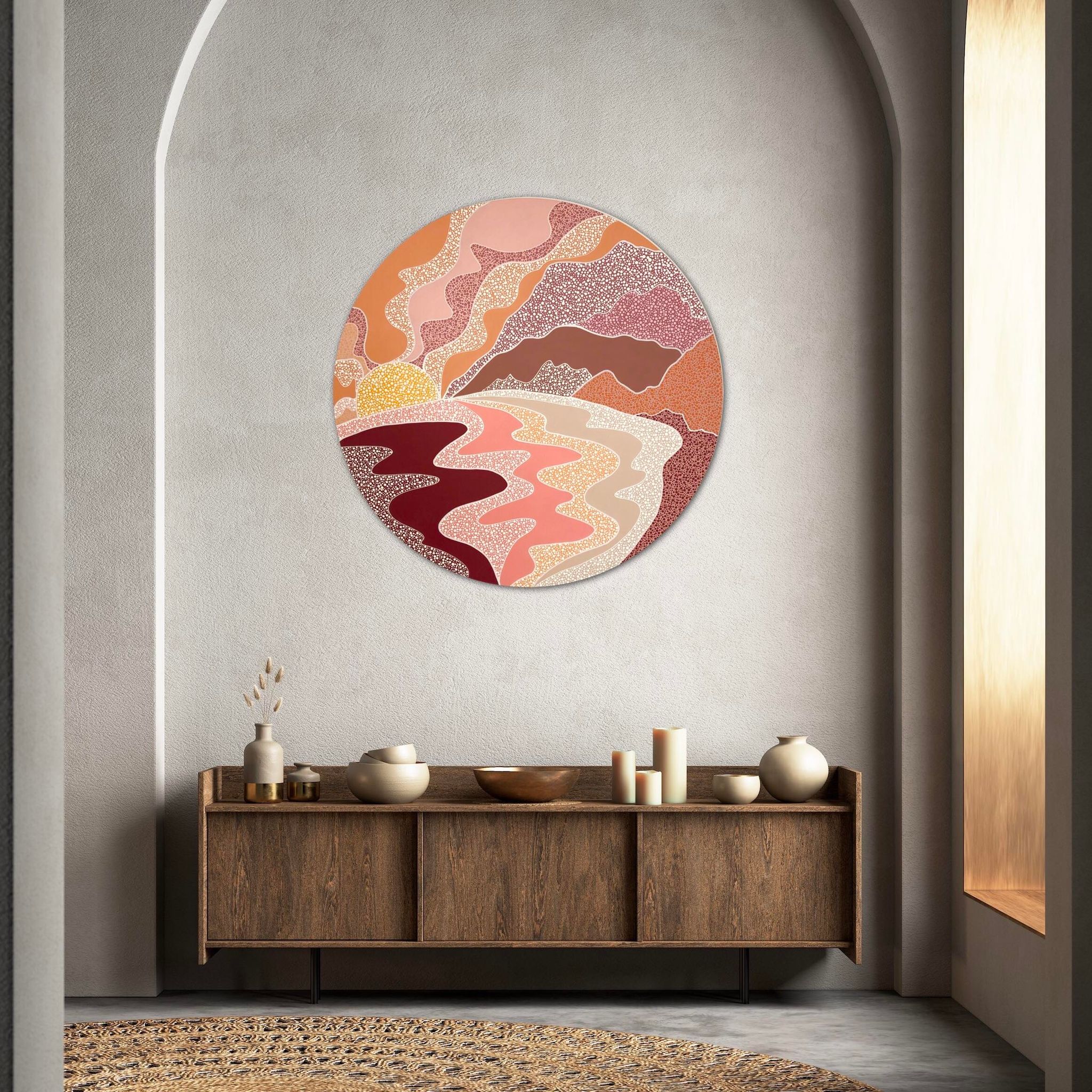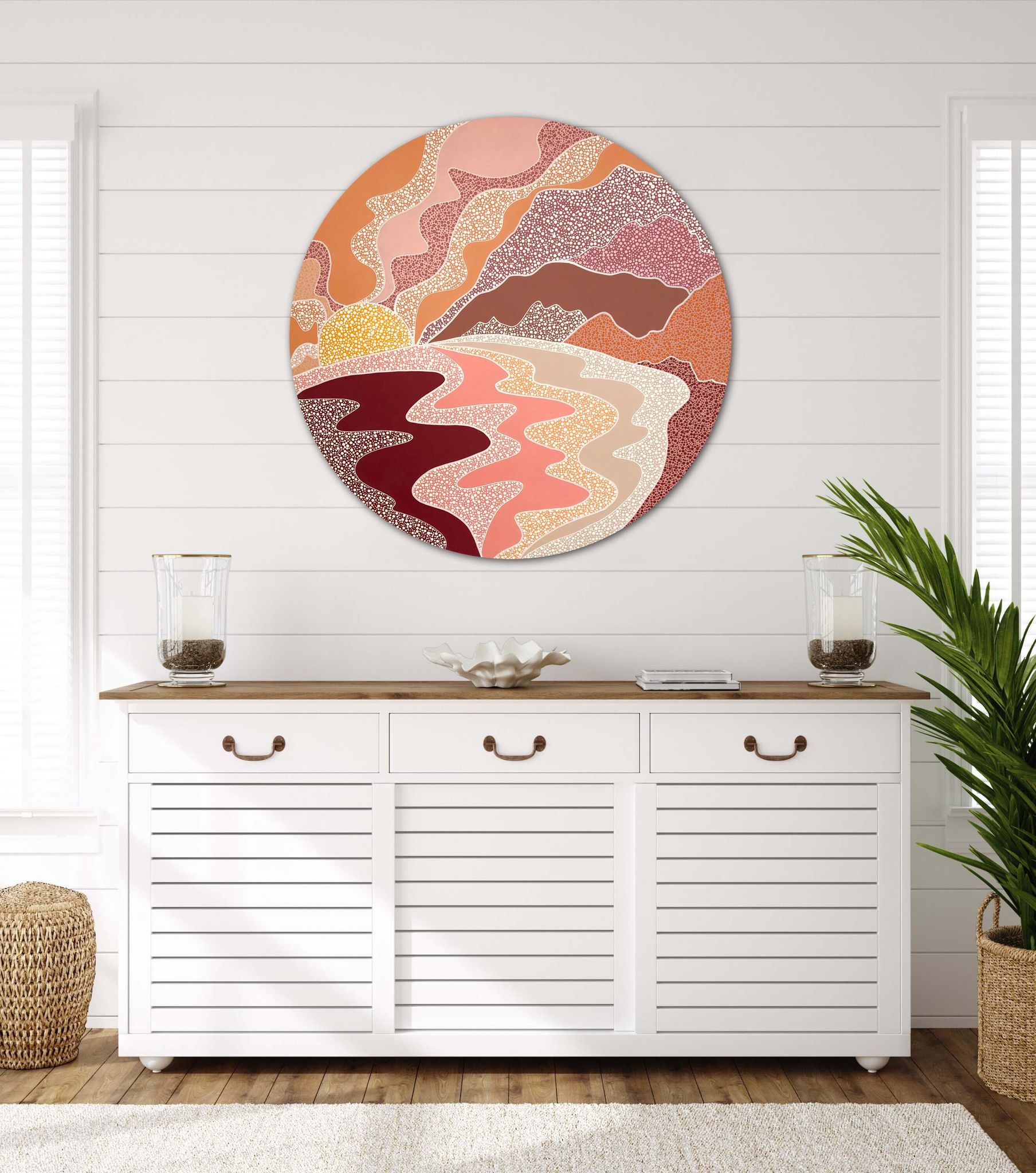 Nature, particularly the Australian landscapes she's explored remains a powerful muse. Her colour palettes echo the serenity of sunrises and sunsets—blending warm earthy tones with cool, introspective hues and vibrant splashes of joyful energy. For years, Nikki kept the spiritual side of her process private, fearing it might be misunderstood. But embracing her truth has allowed her to share the essence of what makes her art unique. Each of her creations is more than a painting—it’s a visual story infused with feeling, intention, and the quiet whispers of the universe, encouraging others to honour their own inner voice.