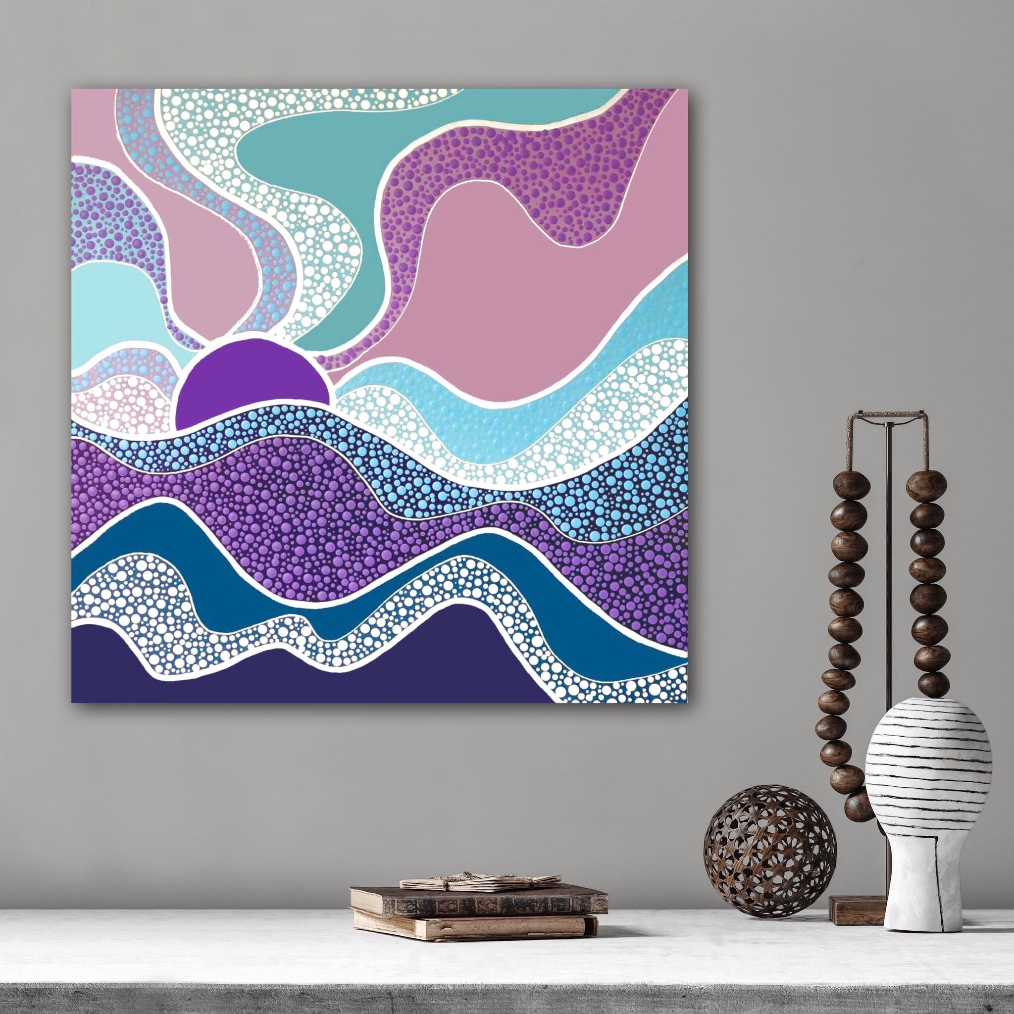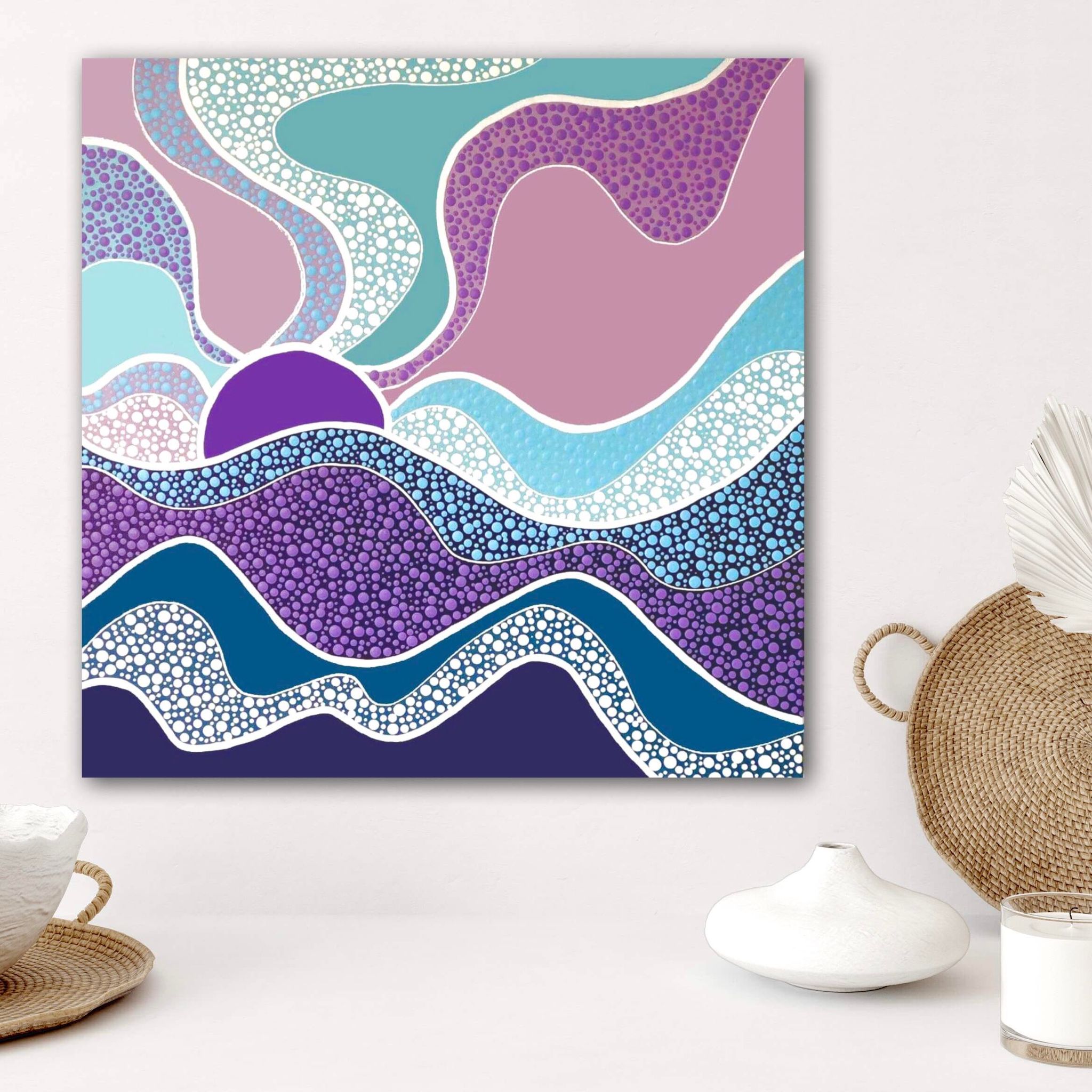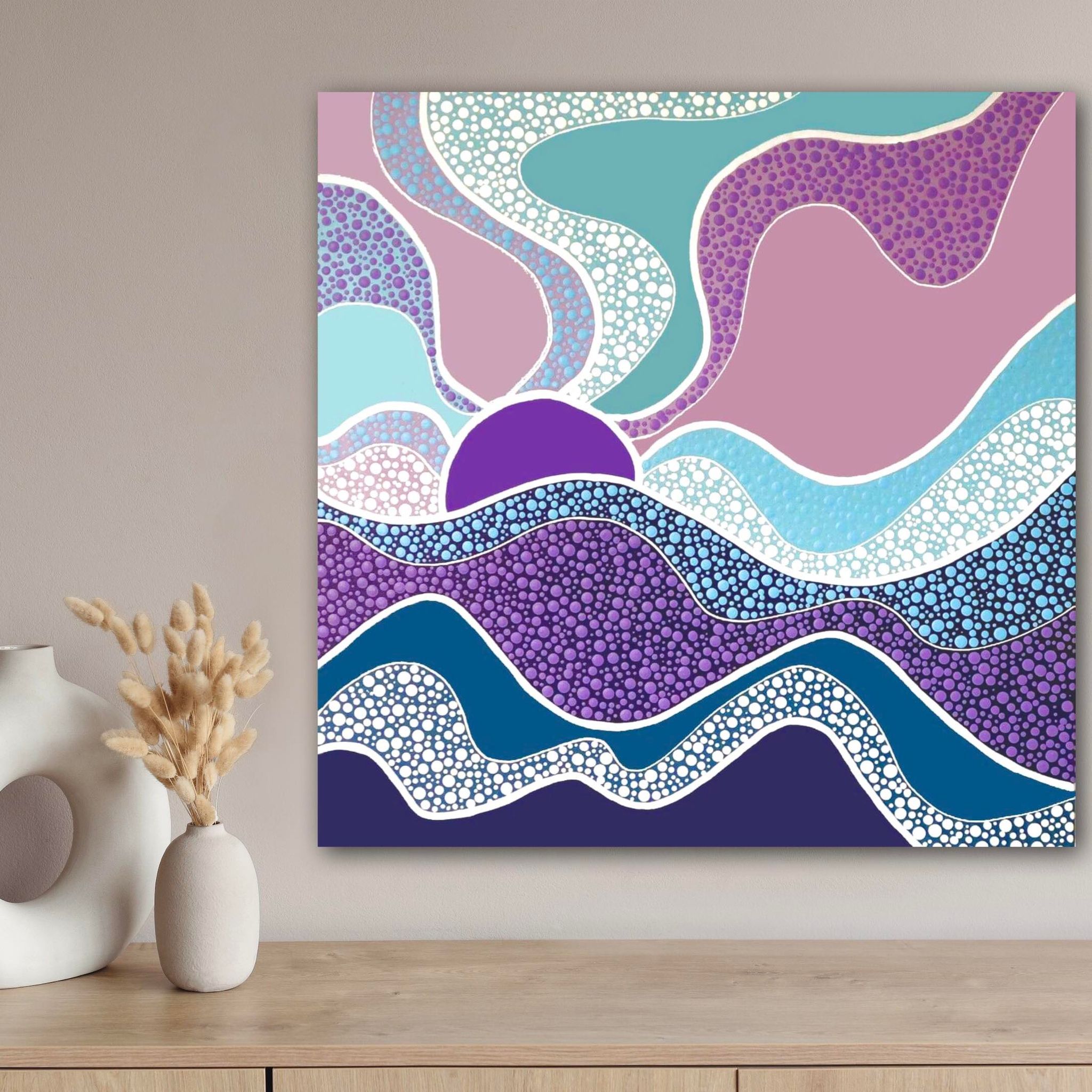 Nature, particularly the Australian landscapes she's explored remains a powerful muse. Her colour palettes echo the serenity of sunrises and sunsets—blending warm earthy tones with cool, introspective hues and vibrant splashes of joyful energy. For years, Nikki kept the spiritual side of her process private, fearing it might be misunderstood. But embracing her truth has allowed her to share the essence of what makes her art unique. Each of her creations is more than a painting—it’s a visual story infused with feeling, intention, and the quiet whispers of the universe, encouraging others to honour their own inner voice.