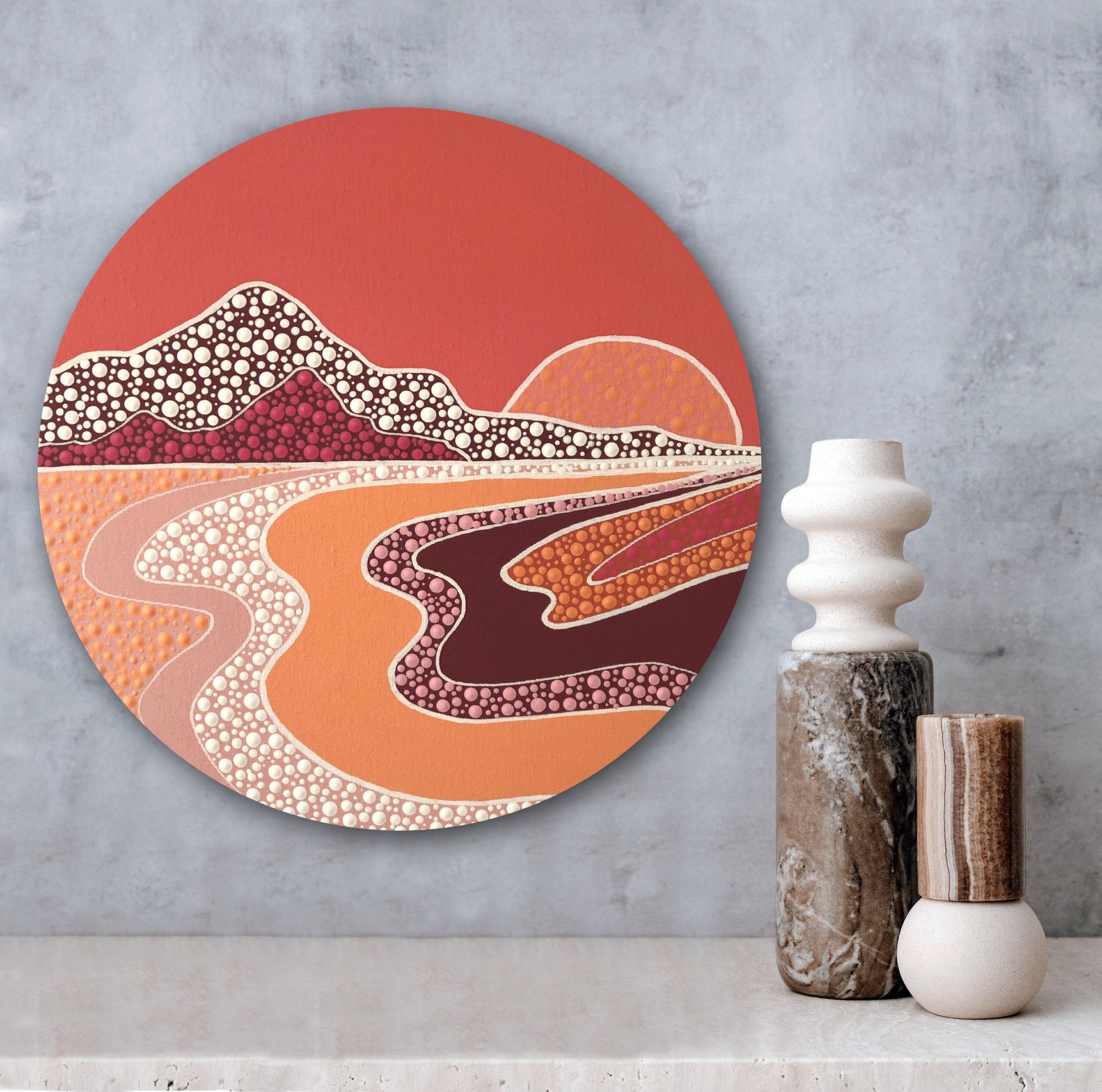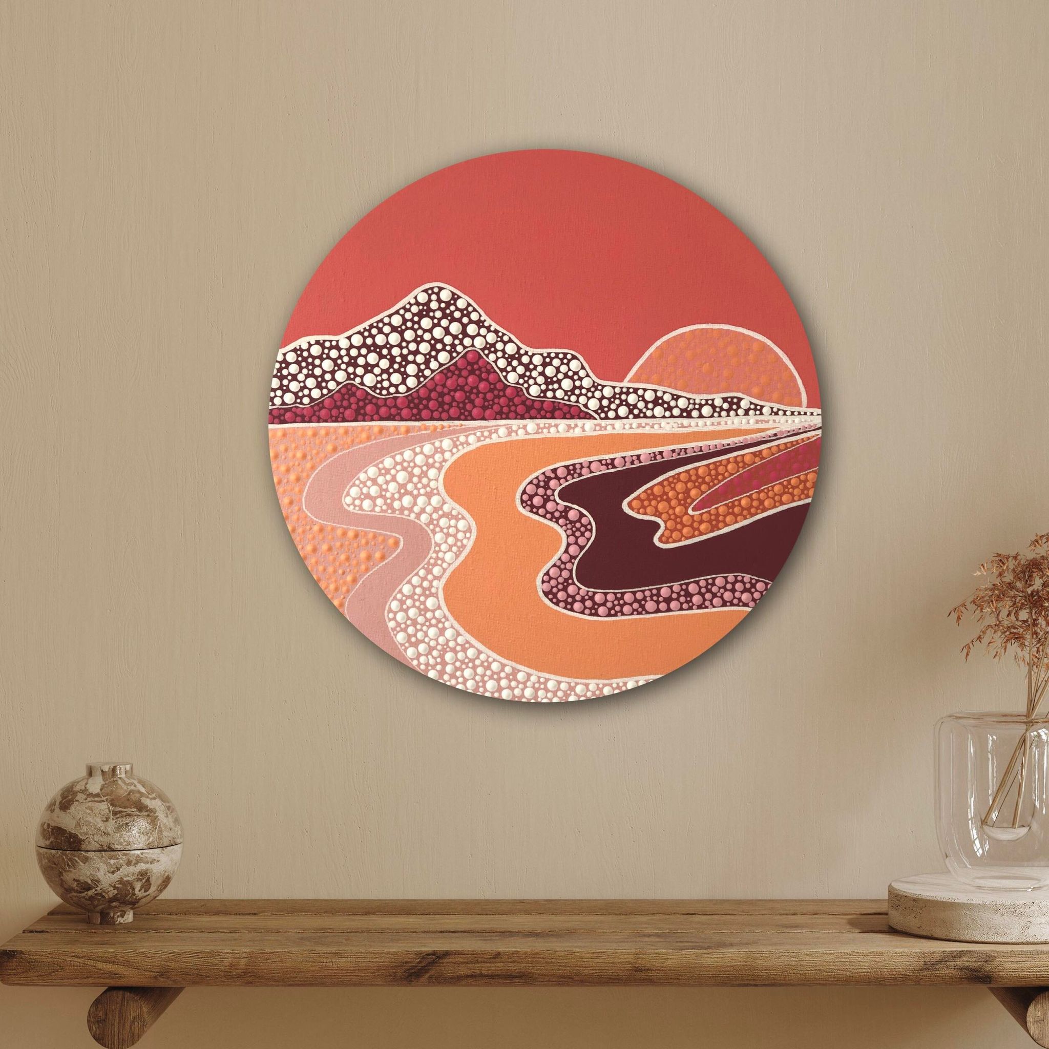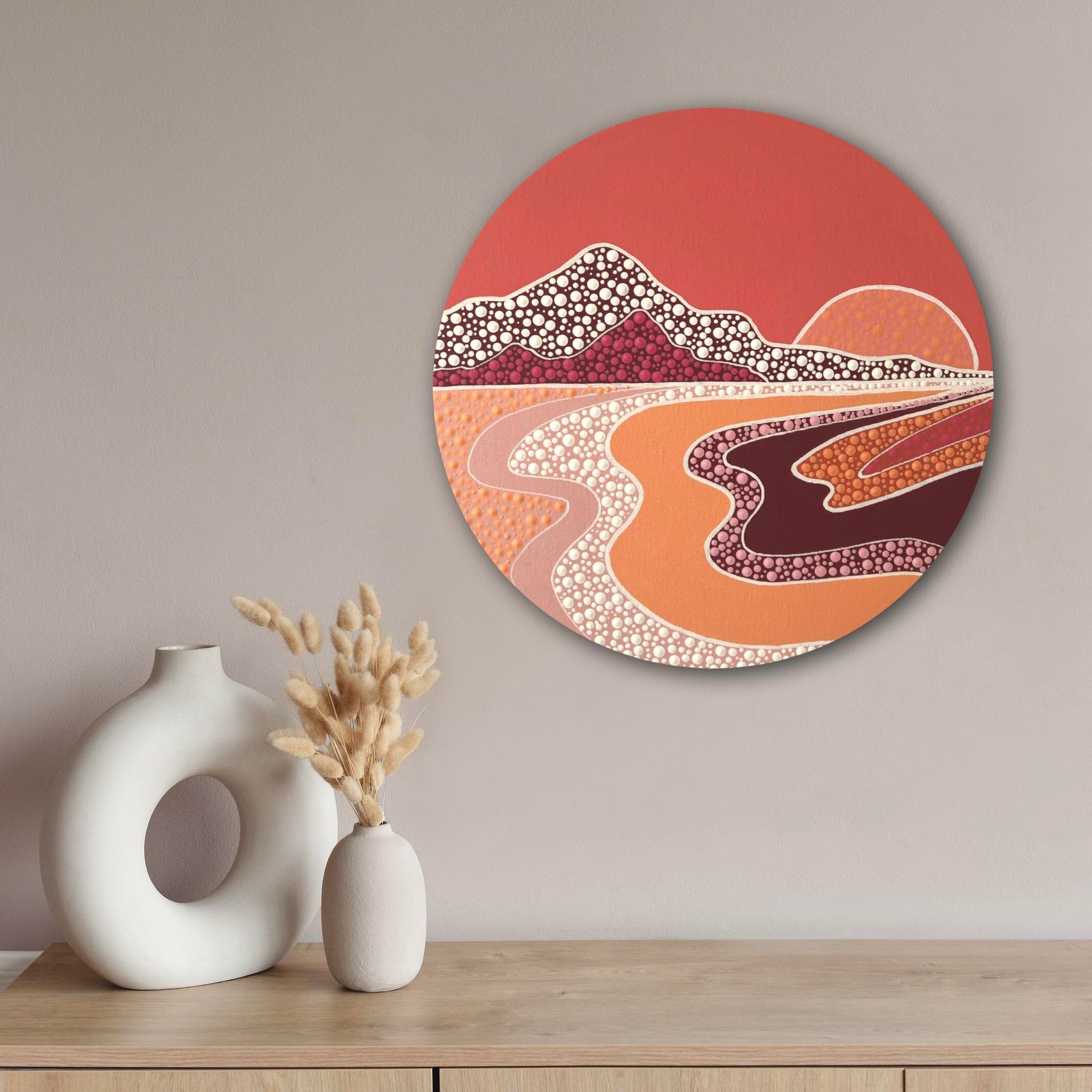 Nature, particularly the Australian landscapes she's explored remains a powerful muse. Her colour palettes echo the serenity of sunrises and sunsets—blending warm earthy tones with cool, introspective hues and vibrant splashes of joyful energy. For years, Nikki kept the spiritual side of her process private, fearing it might be misunderstood. But embracing her truth has allowed her to share the essence of what makes her art unique. Each of her creations is more than a painting—it’s a visual story infused with feeling, intention, and the quiet whispers of the universe, encouraging others to honour their own inner voice.